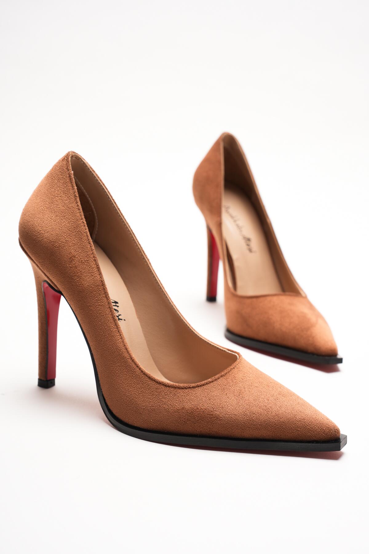 Stiletto Topuklu Ayakkabı Sivri Burun Klasik Abiye Kadın Ayakkabısı Tokyo Taba Süet