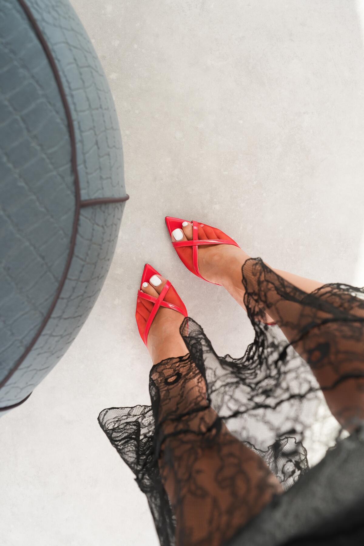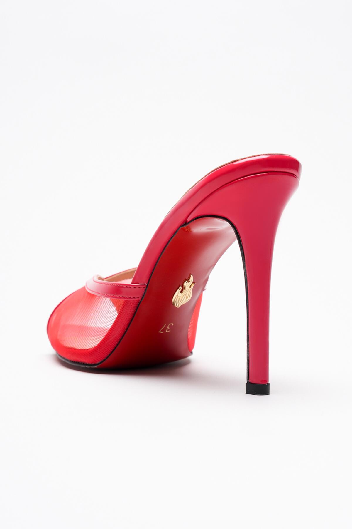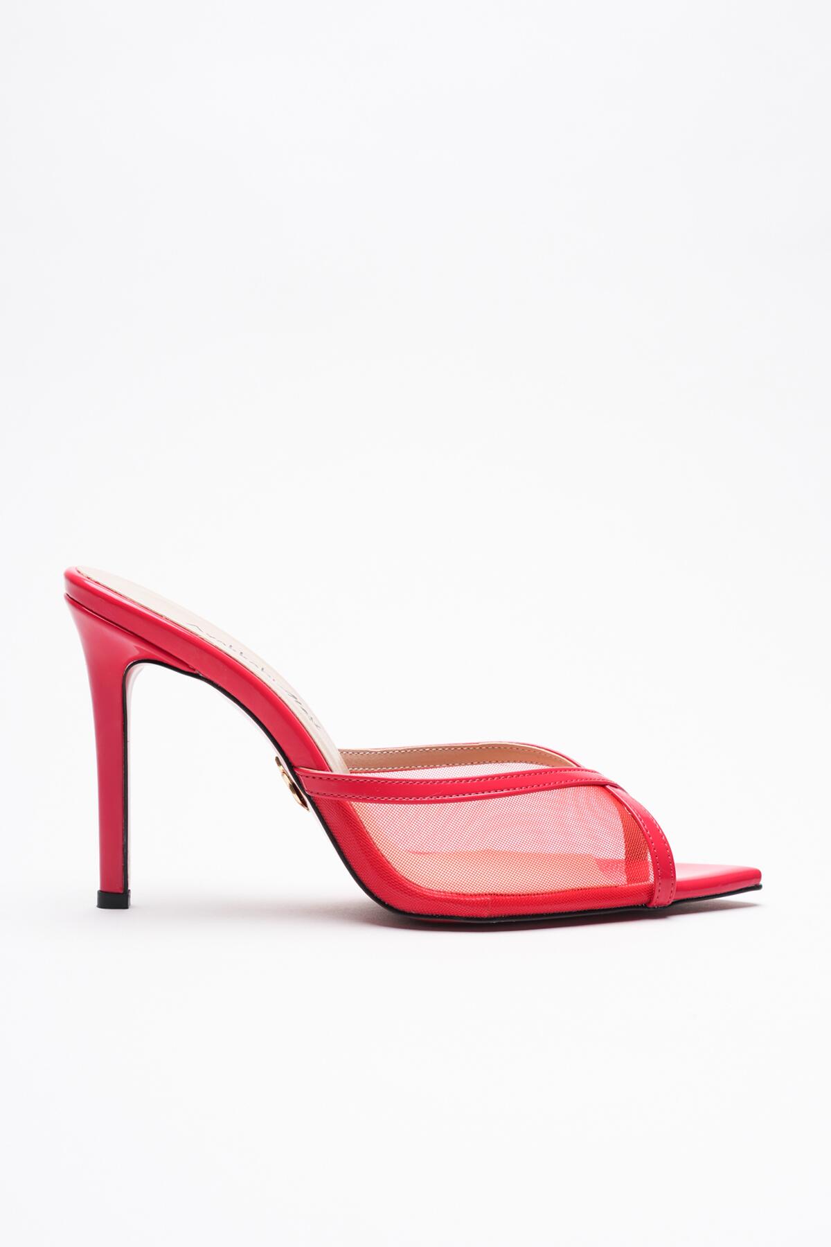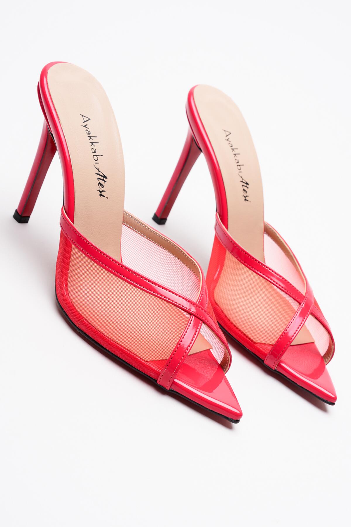 Kadın Burun Açık Fileli Topuklu Terlik Yekta Kırmızı Rugan