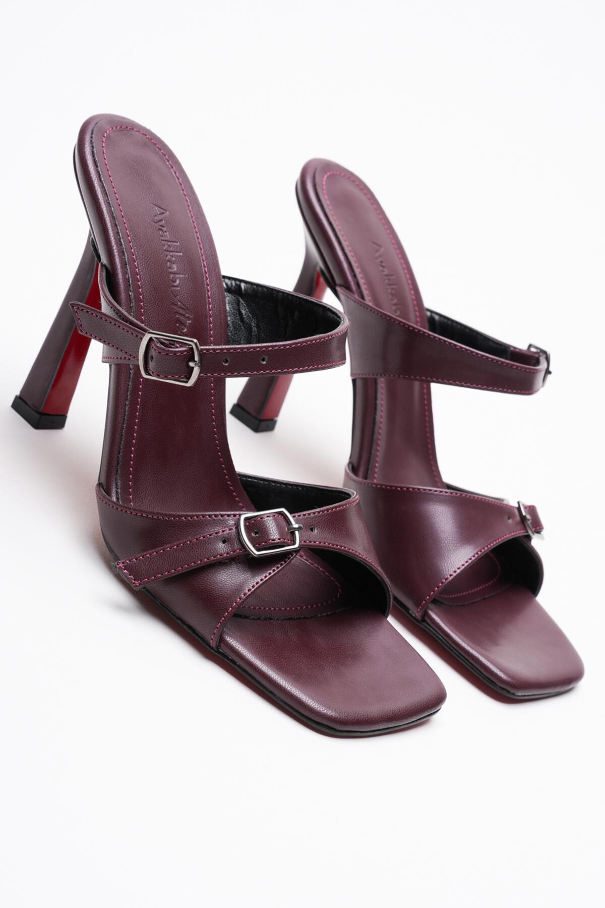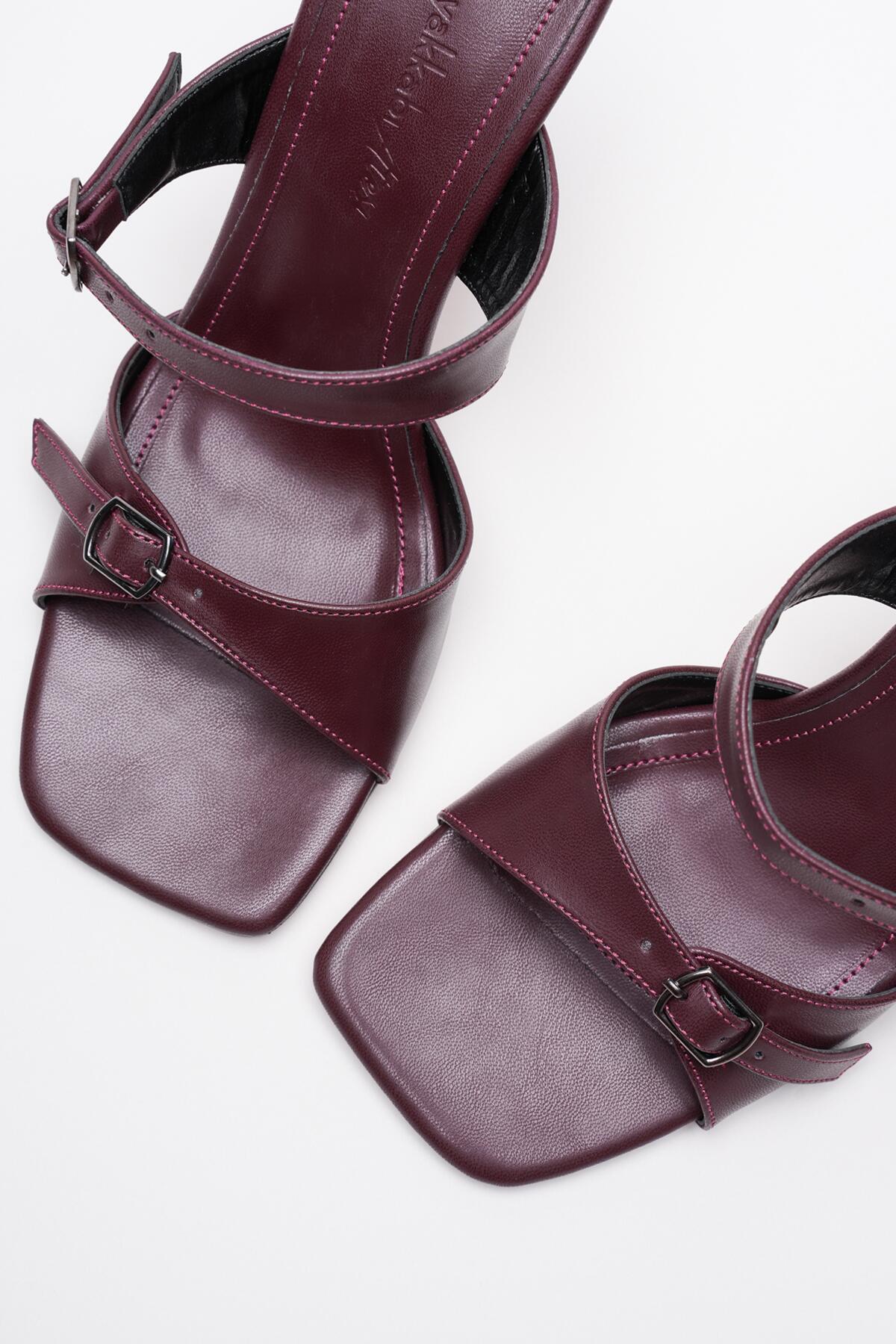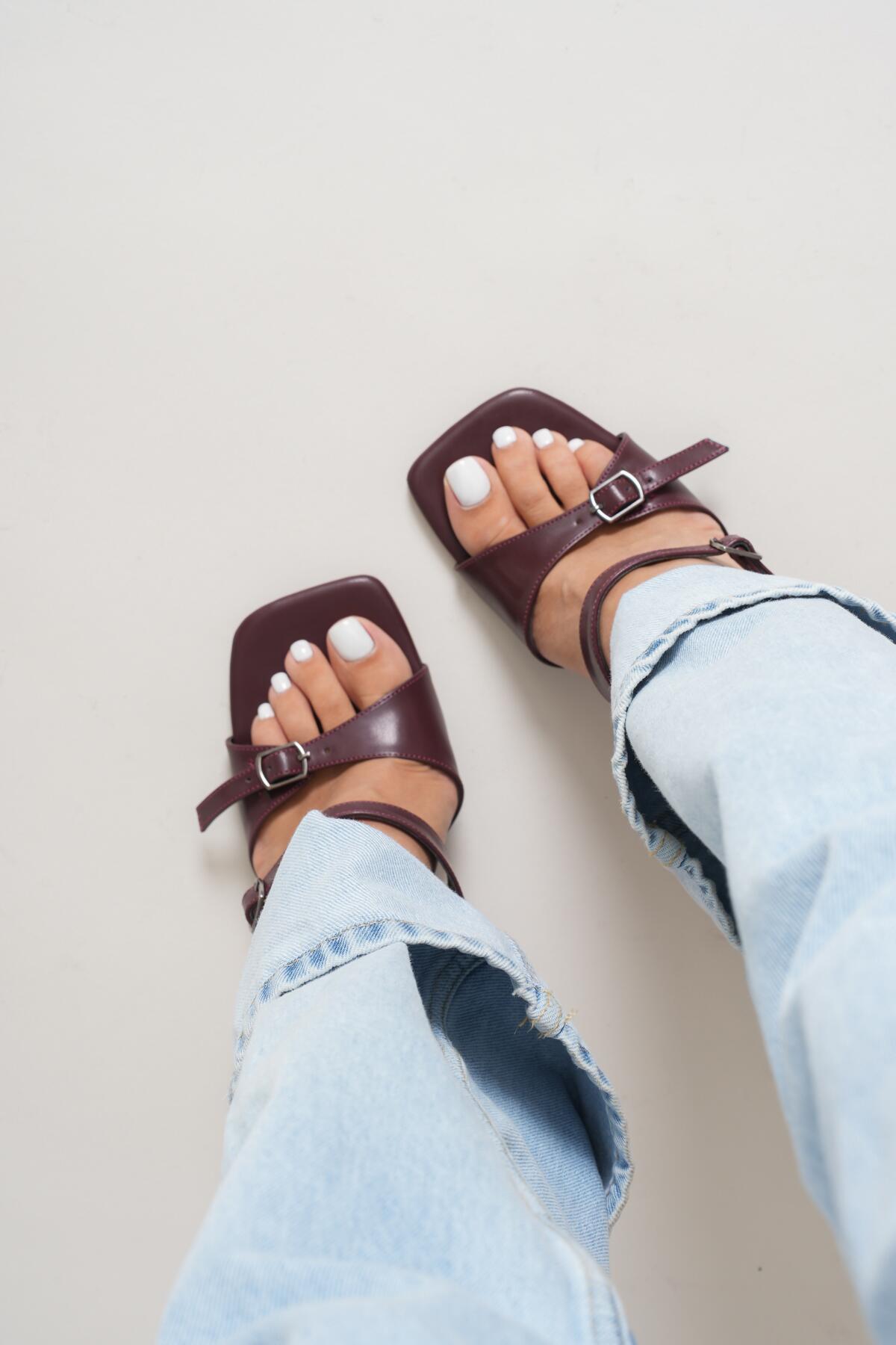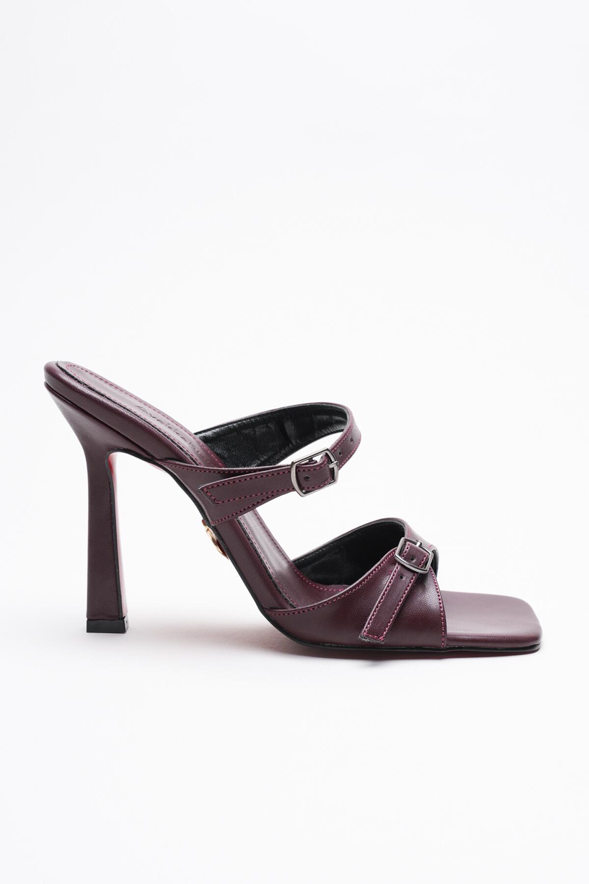 Kadın Çift Bant Tokalı Topuklu Terlik Rona Bordo