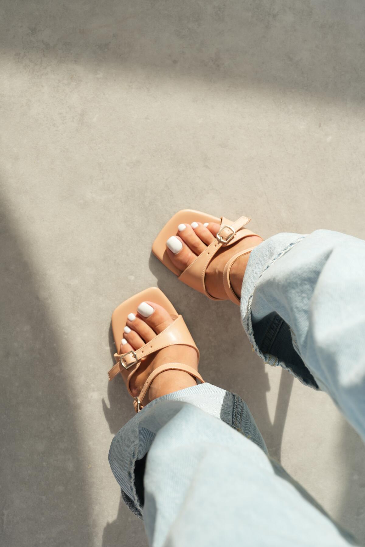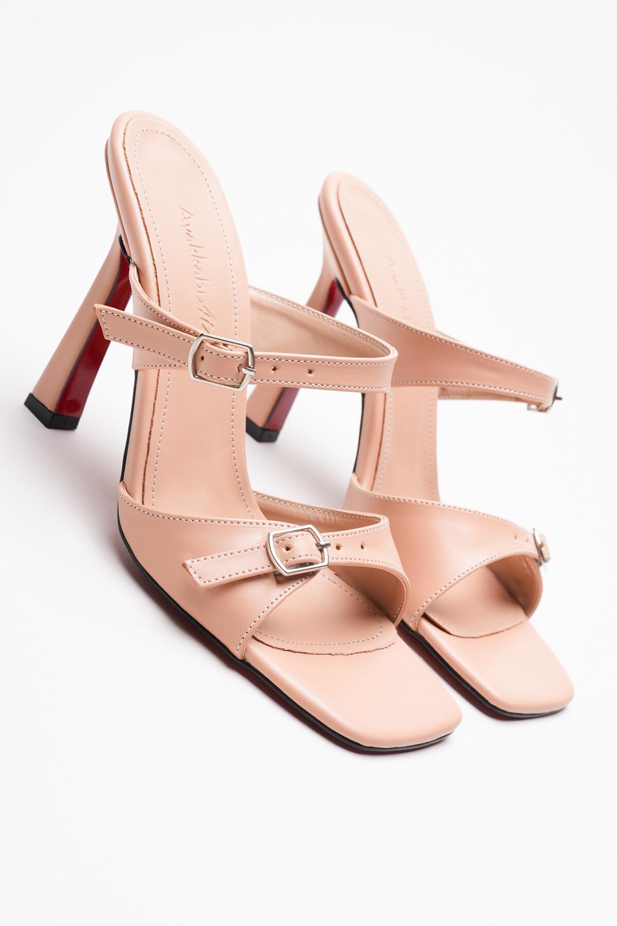 Kadın Çift Bant Tokalı Topuklu Terlik Rona Nude Cilt