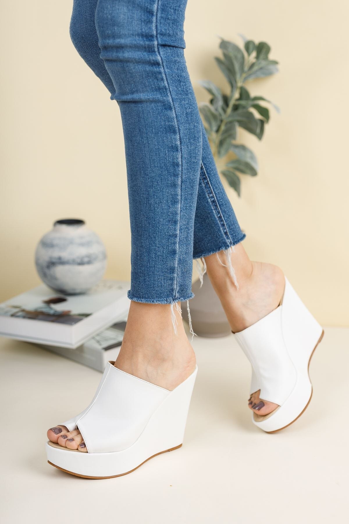 Kadın Dolgu Topuklu Parmak Arası Terlik Baleon Beyaz Cilt