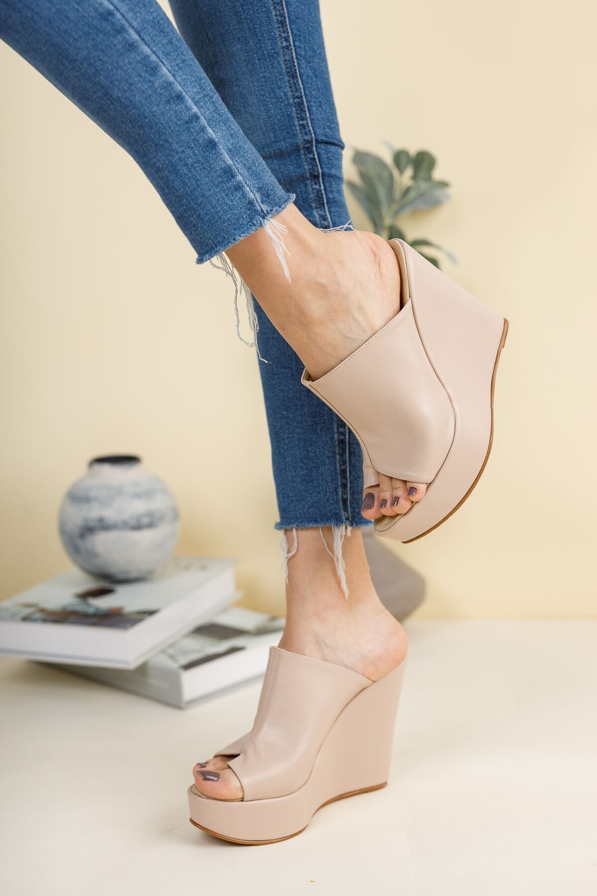 Kadın Dolgu Topuklu Parmak Arası Terlik Baleon Nude Cilt