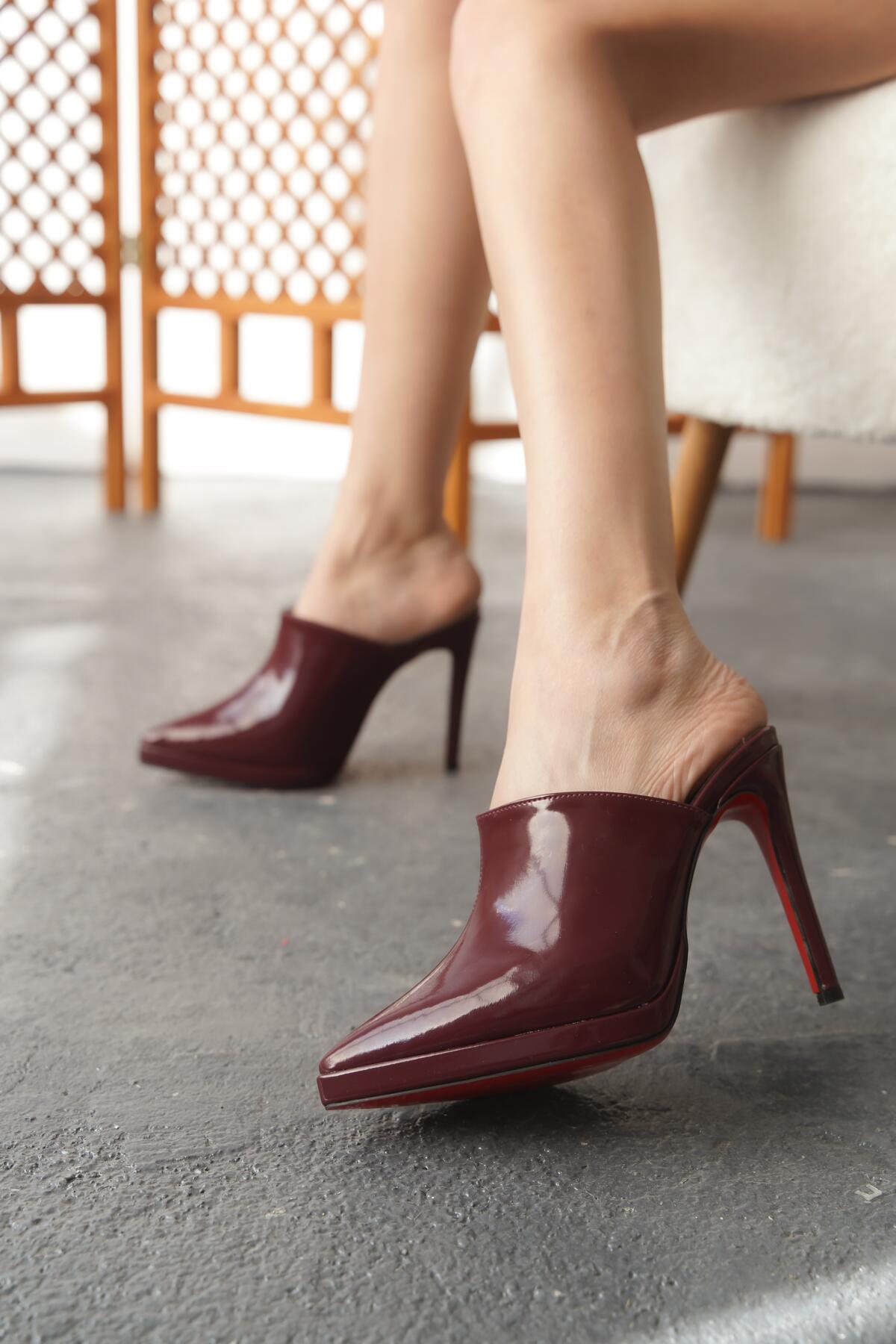 Kadın Kısa Platform İnce Topuklu Terlik Miole Bordo