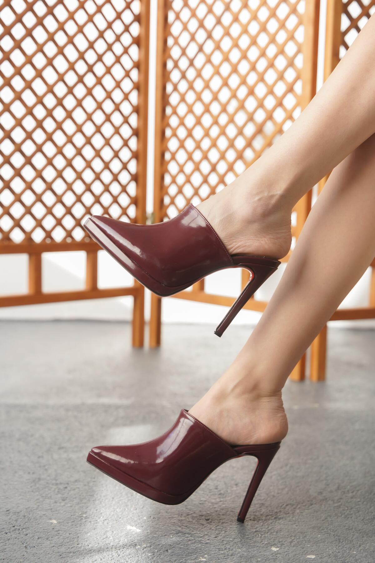 Kadın Kısa Platform İnce Topuklu Terlik Miole Bordo
