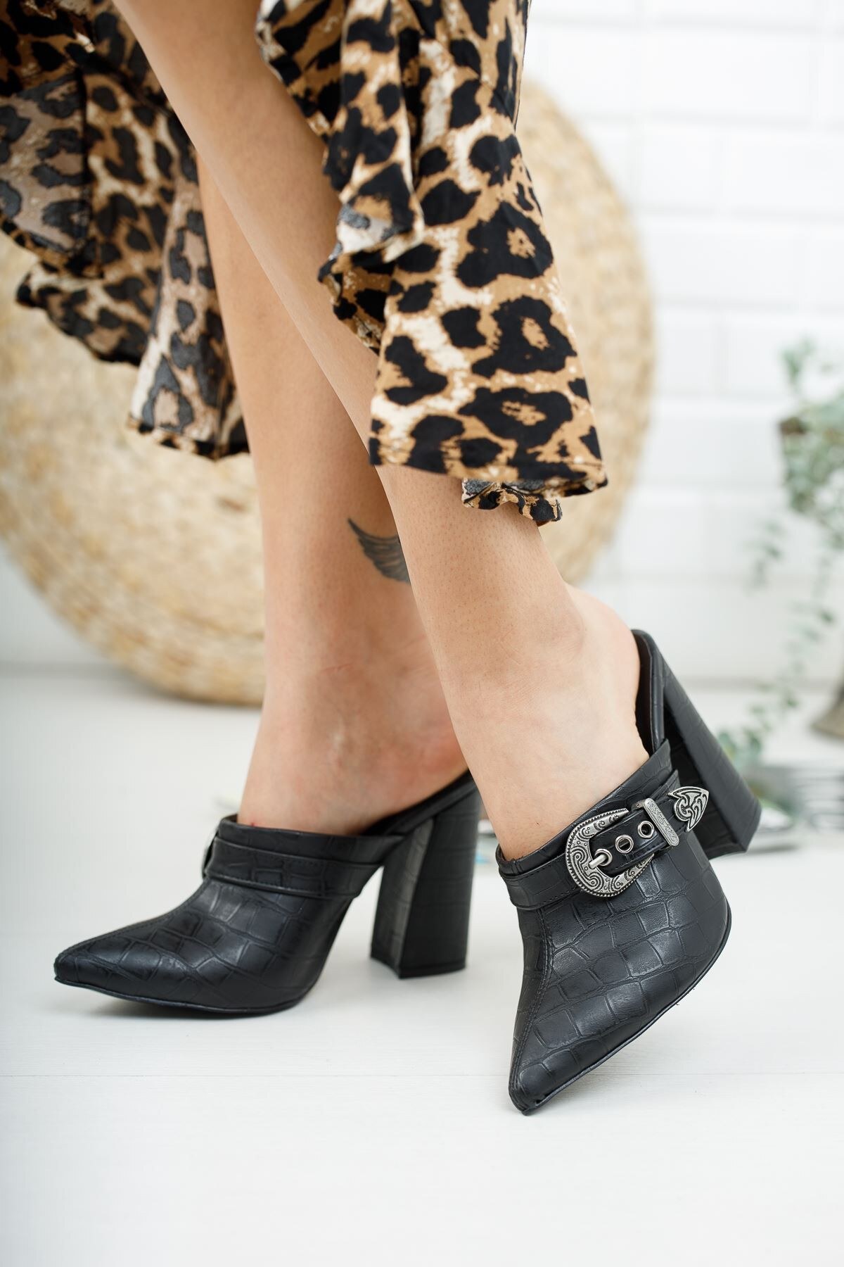 Kadın Krokodil Tokalı Topuklu Terlik Bacy Siyah