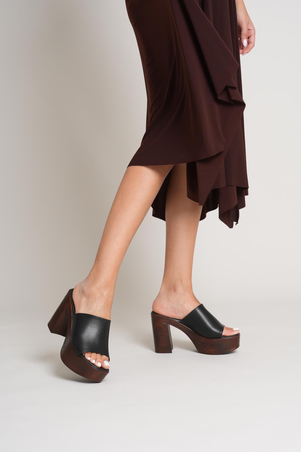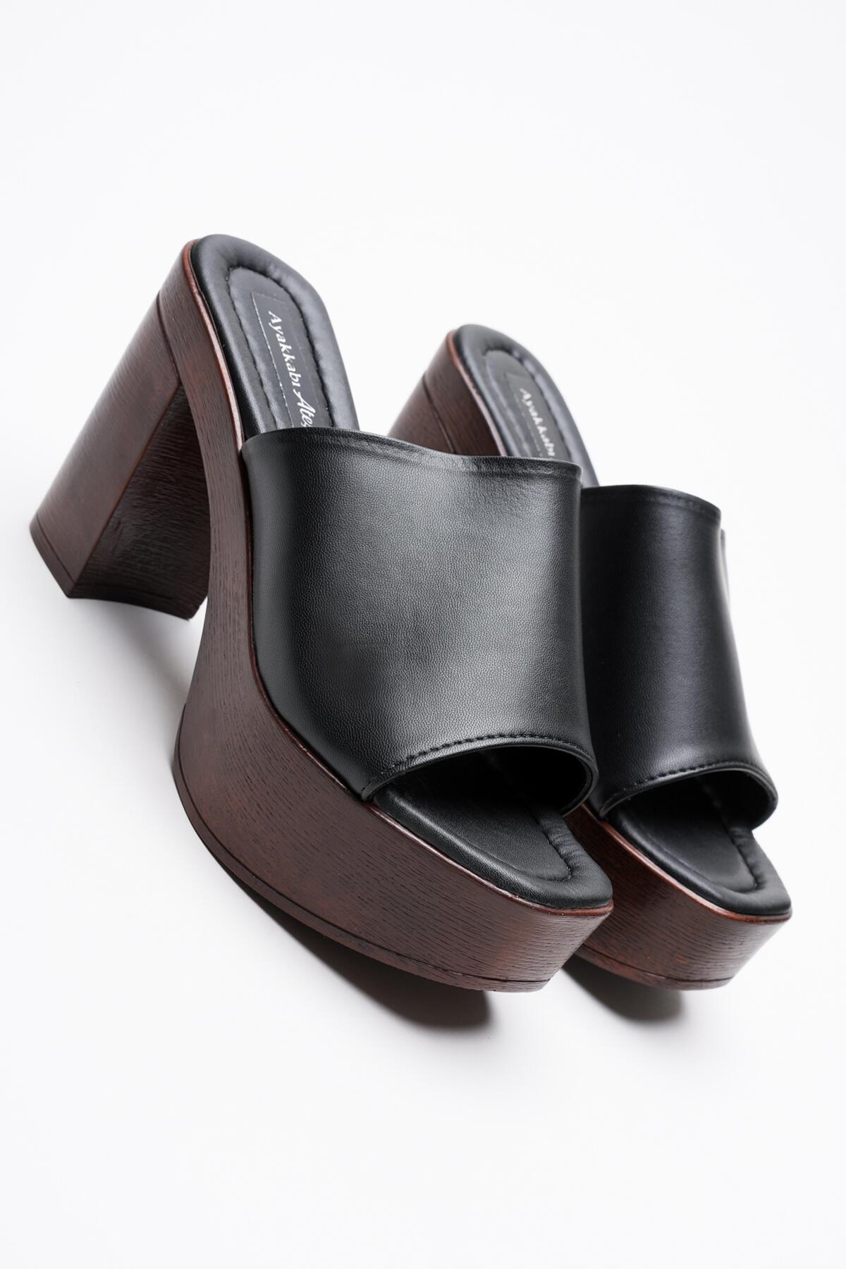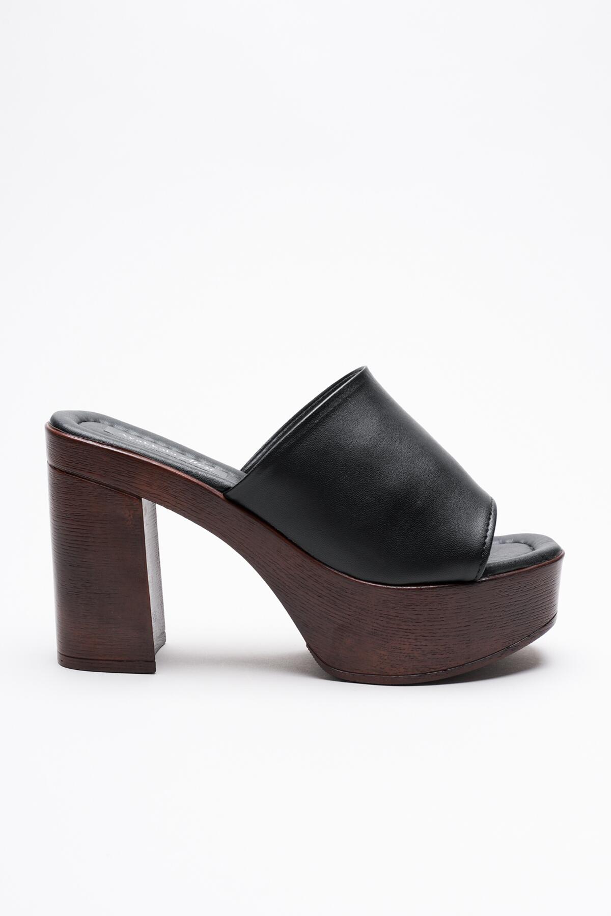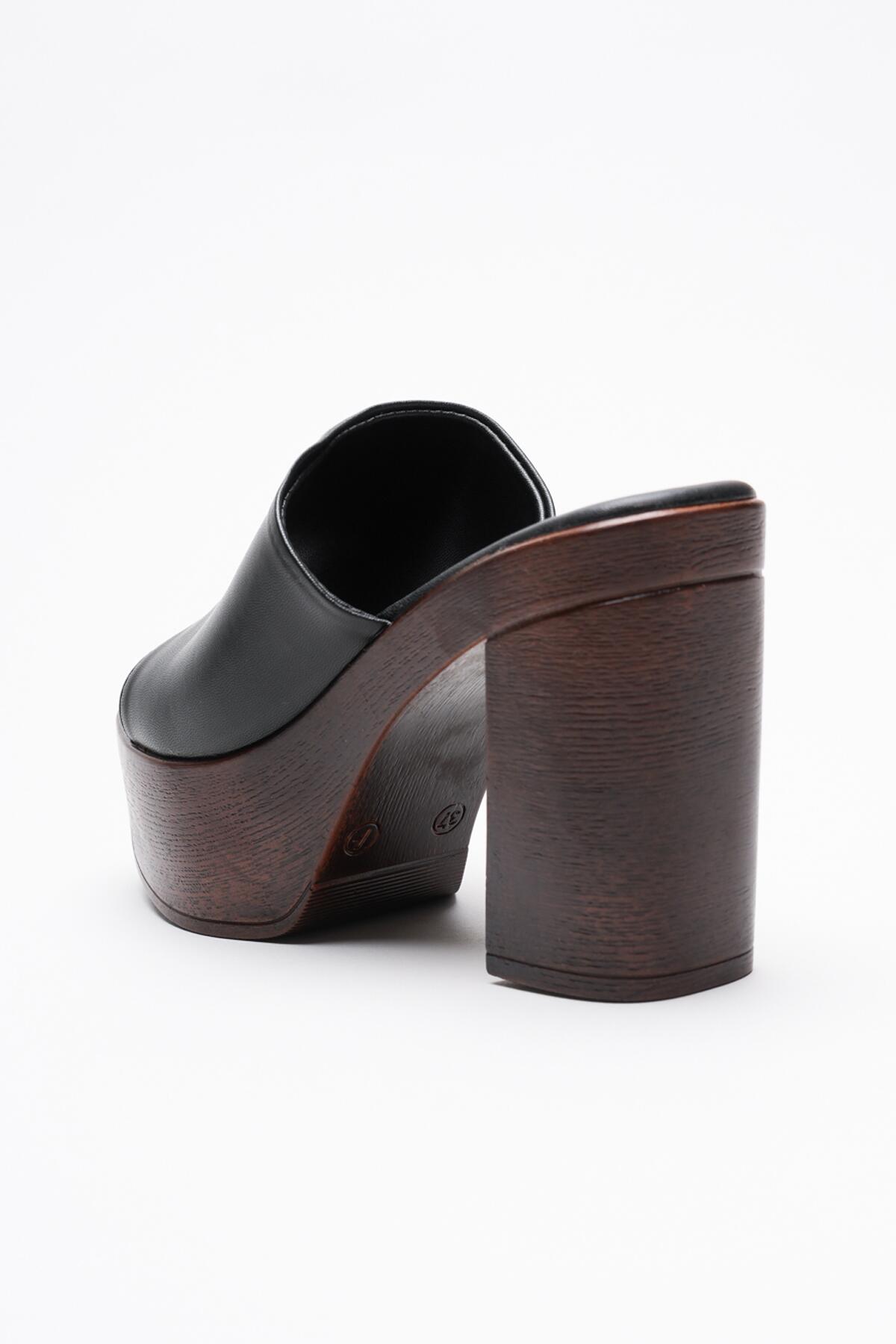 Kadın Mantar Taban Tek Yüz Topuklu Terlik Caseli Siyah Cilt