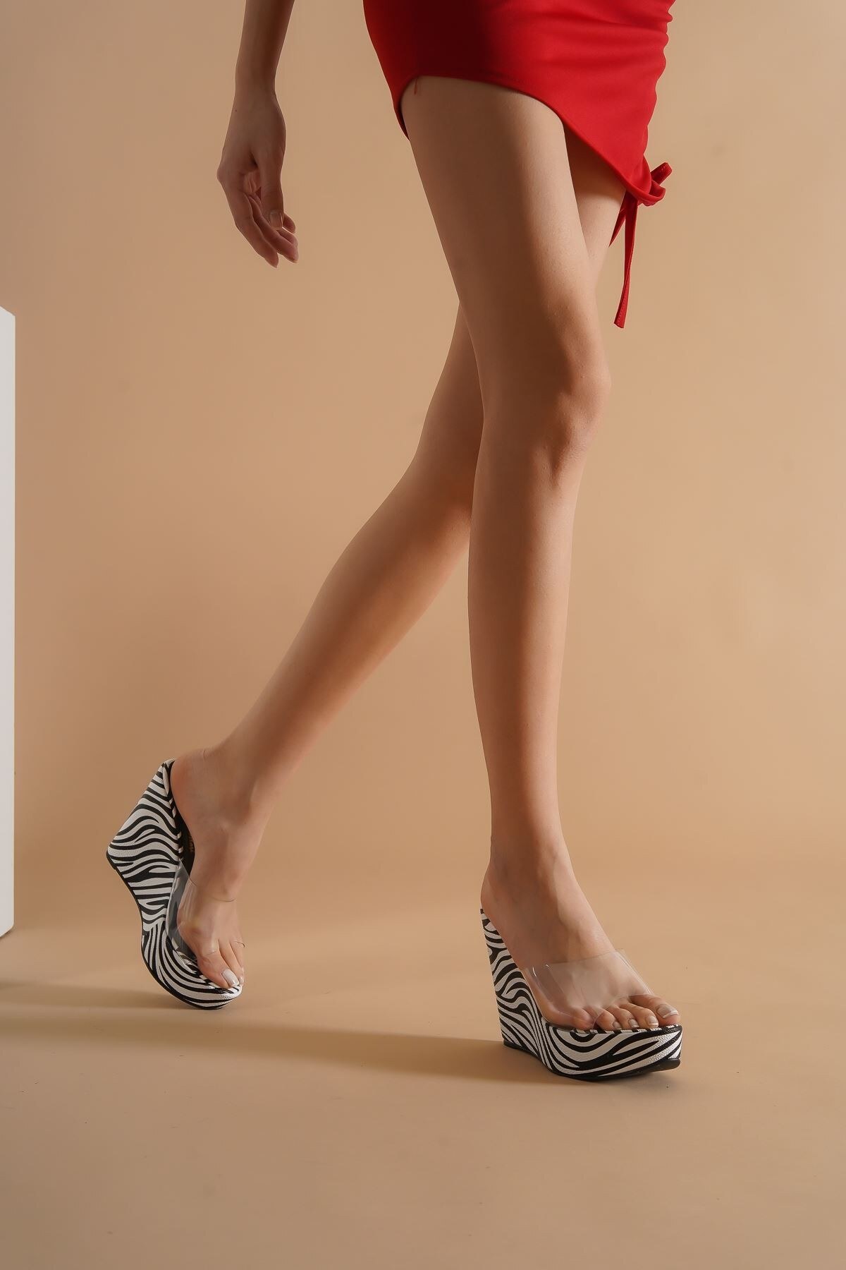 Kadın Şeffaf Dolgu Topuk Terlik Adoles Zebra
