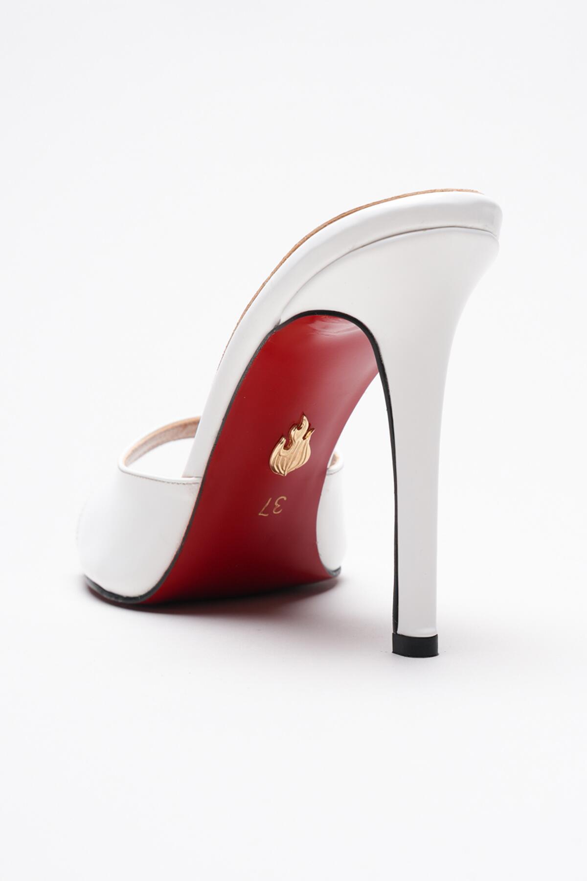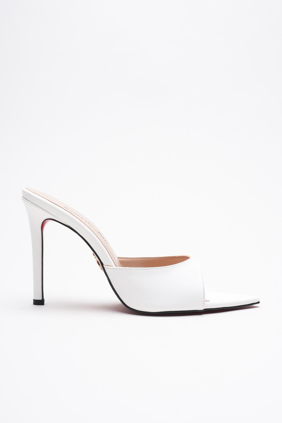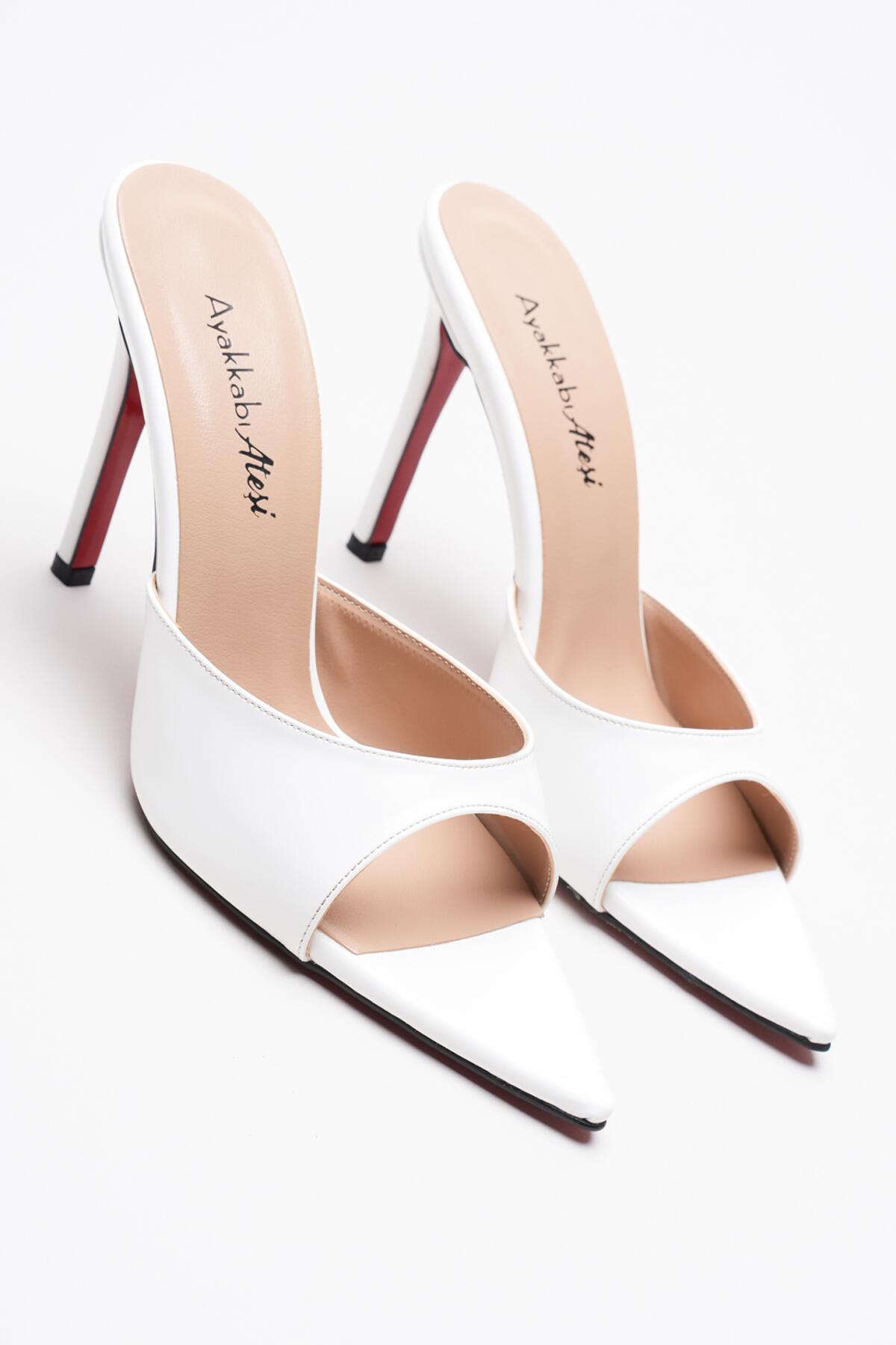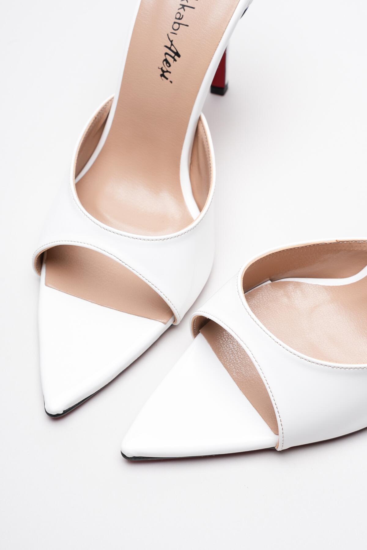 Kadın Sivri Burun İnce Topuklu Terlik Sona Beyaz Rugan