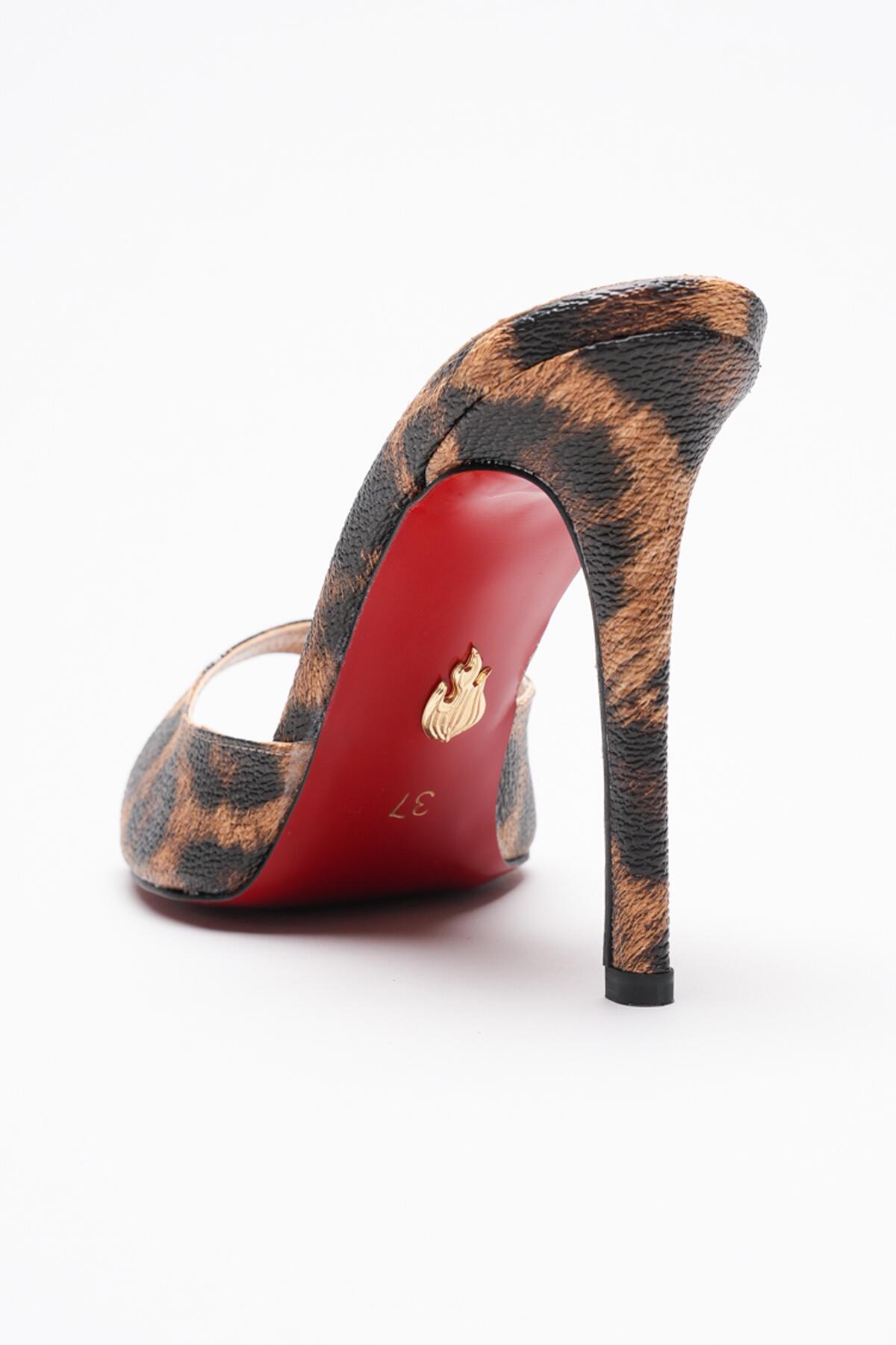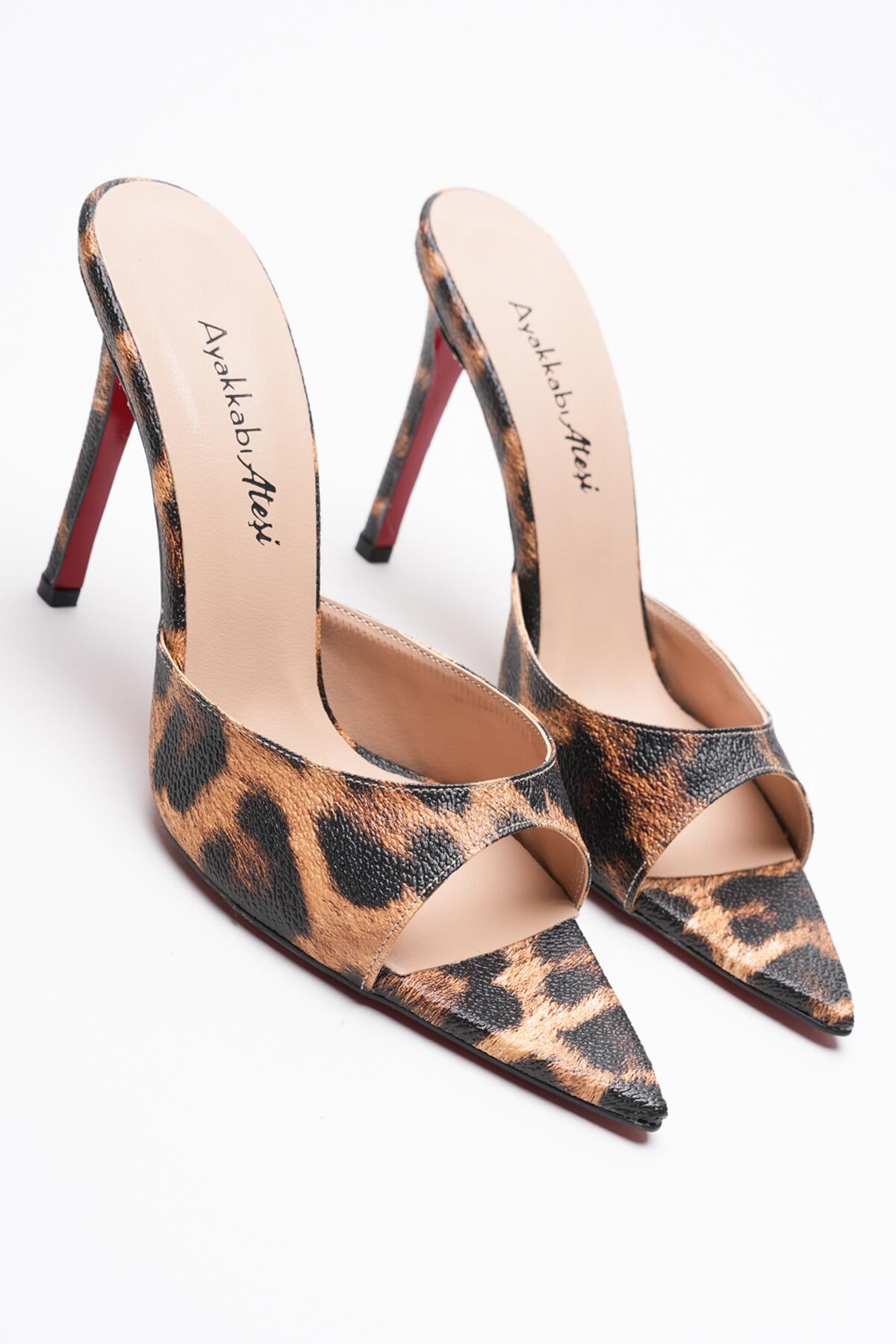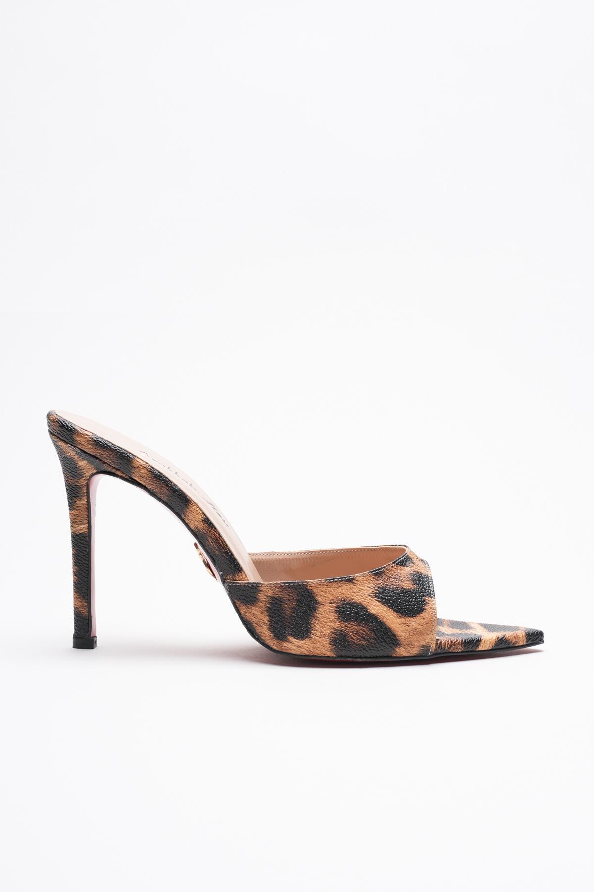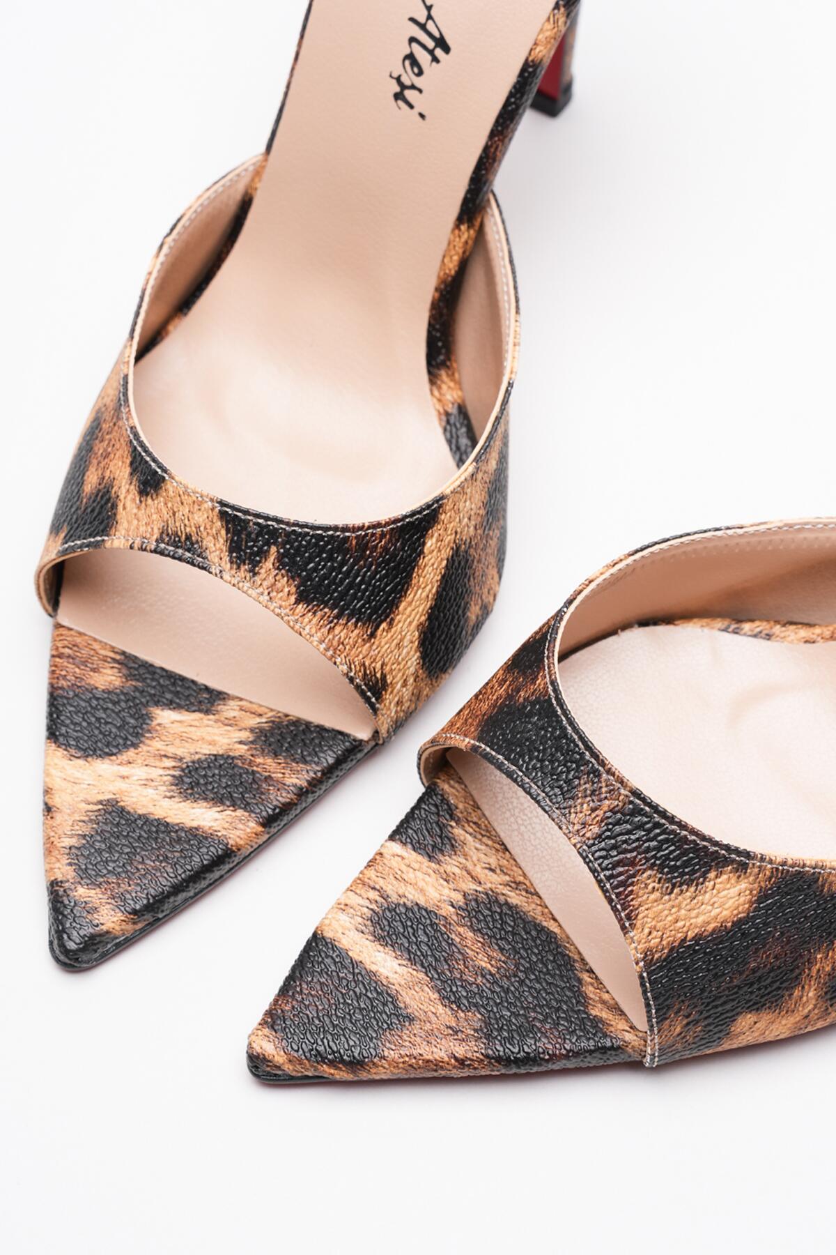 Kadın Sivri Burun İnce Topuklu Terlik Sona Leopar