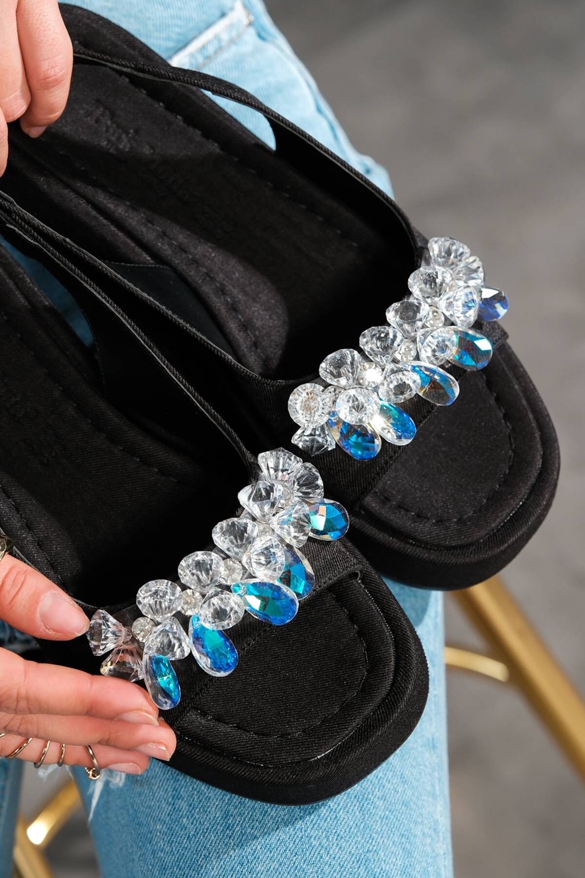 Kadın Taşlı Yumuşak Taban Sandalet Siyah