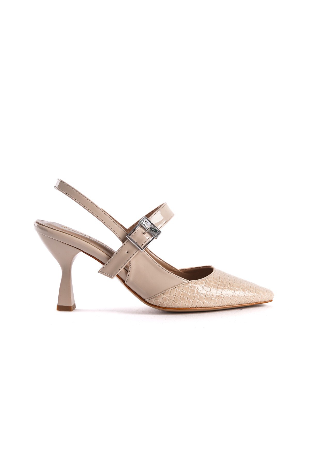 Bej Tasarım Tokalı Rugan Kadın Topuklu Ayakkabı Lisa Bej