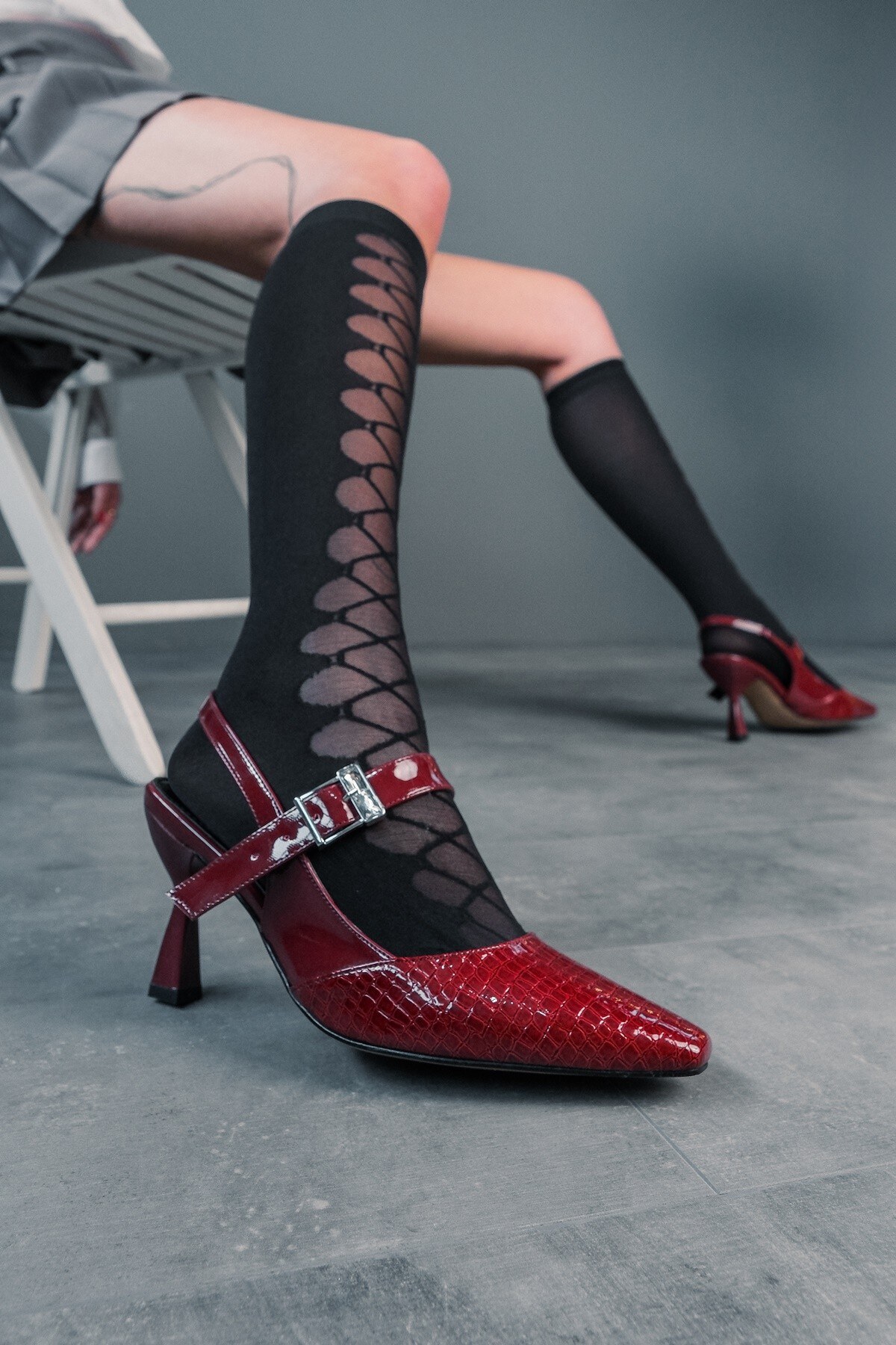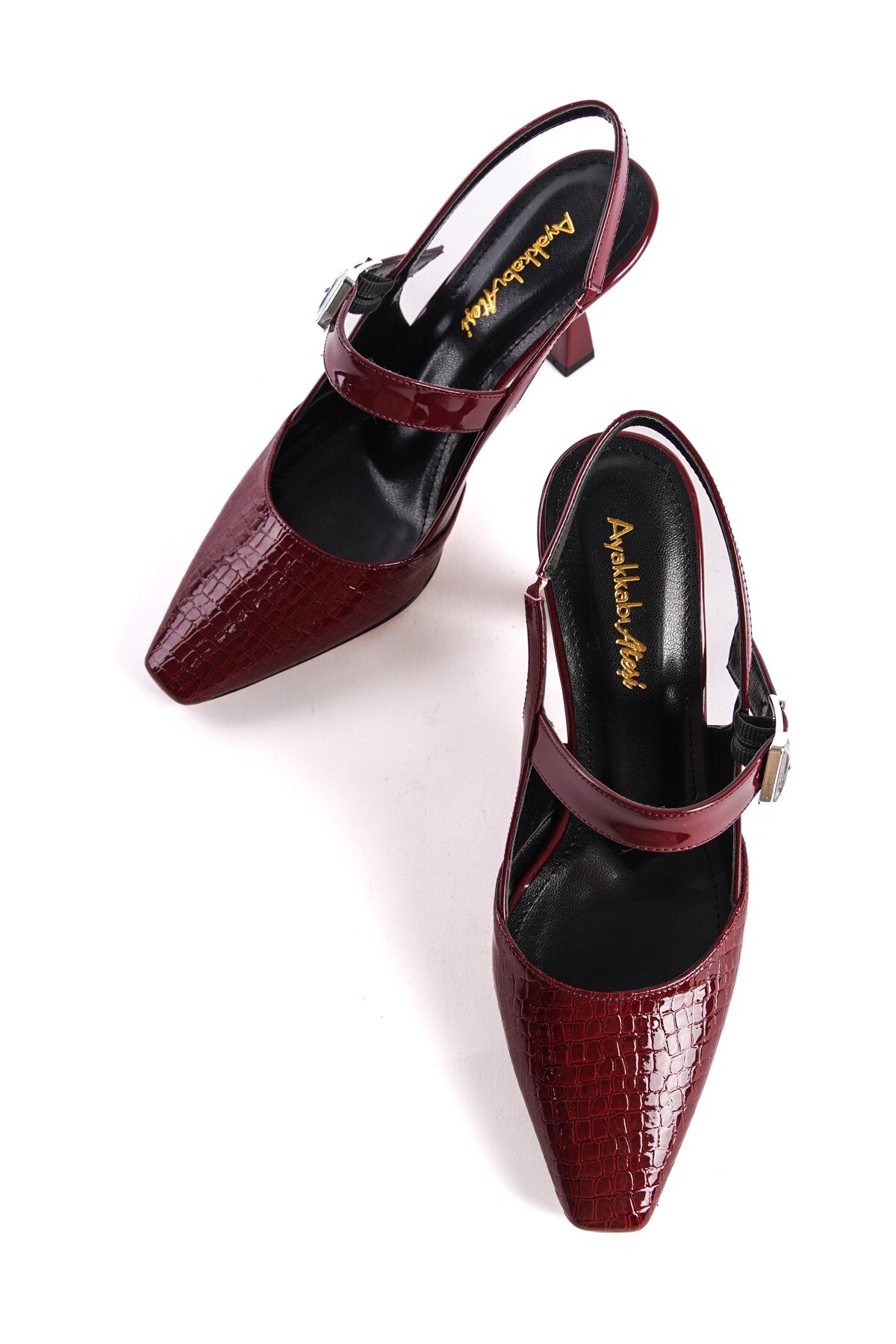Bordo Tasarım Tokalı Rugan Kadın Topuklu Ayakkabı Lisa Bordo