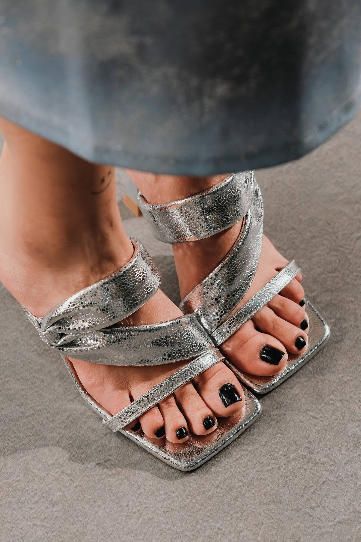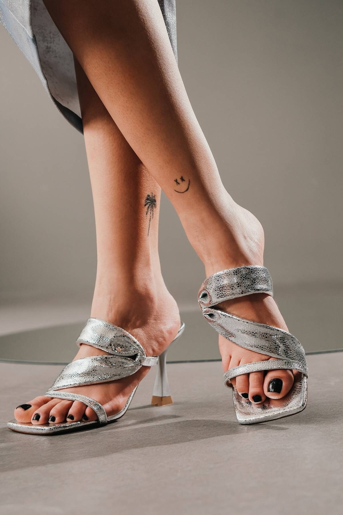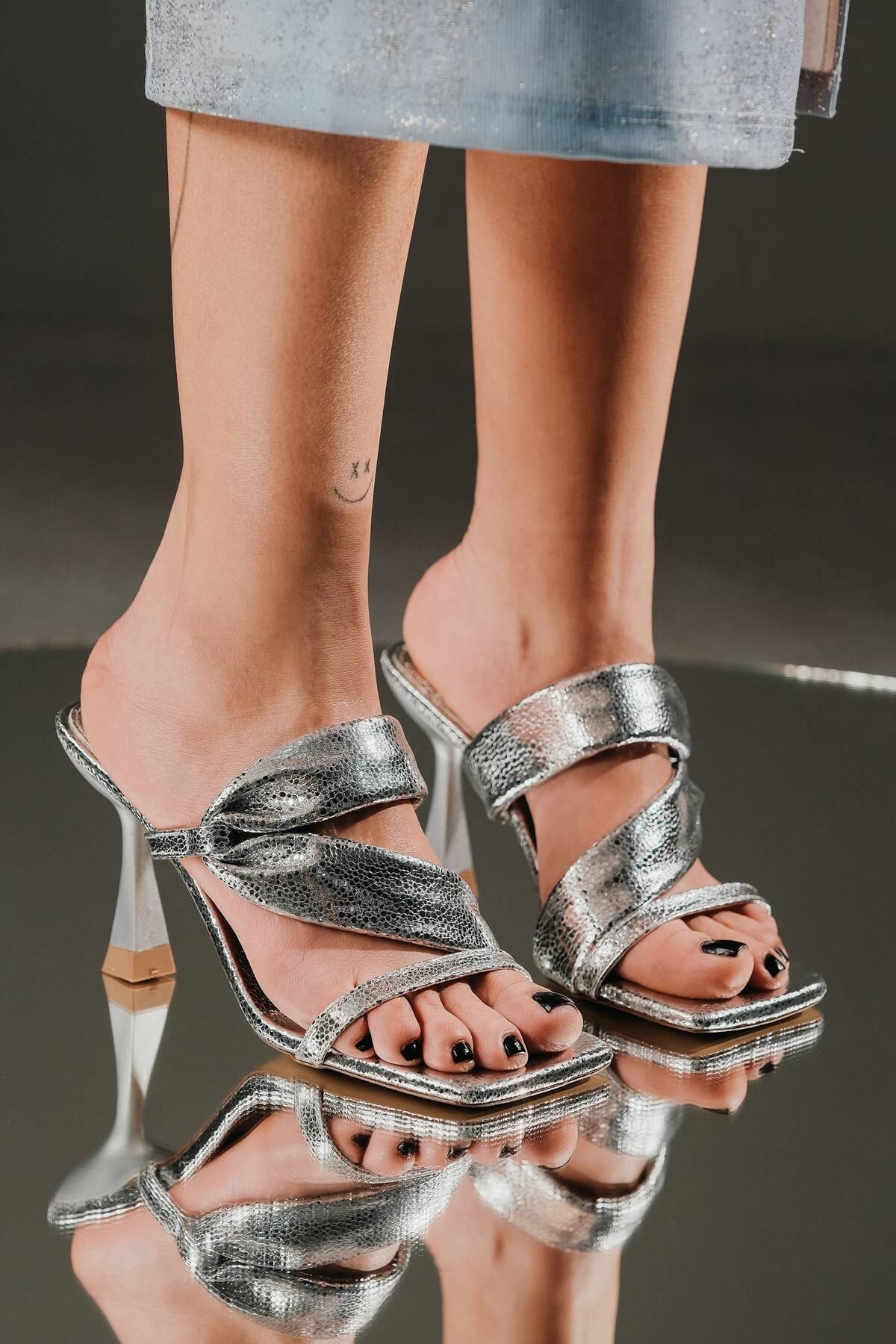 Gümüş Yılanlı Kadın Topuklu Terlik Ronil Gümüş