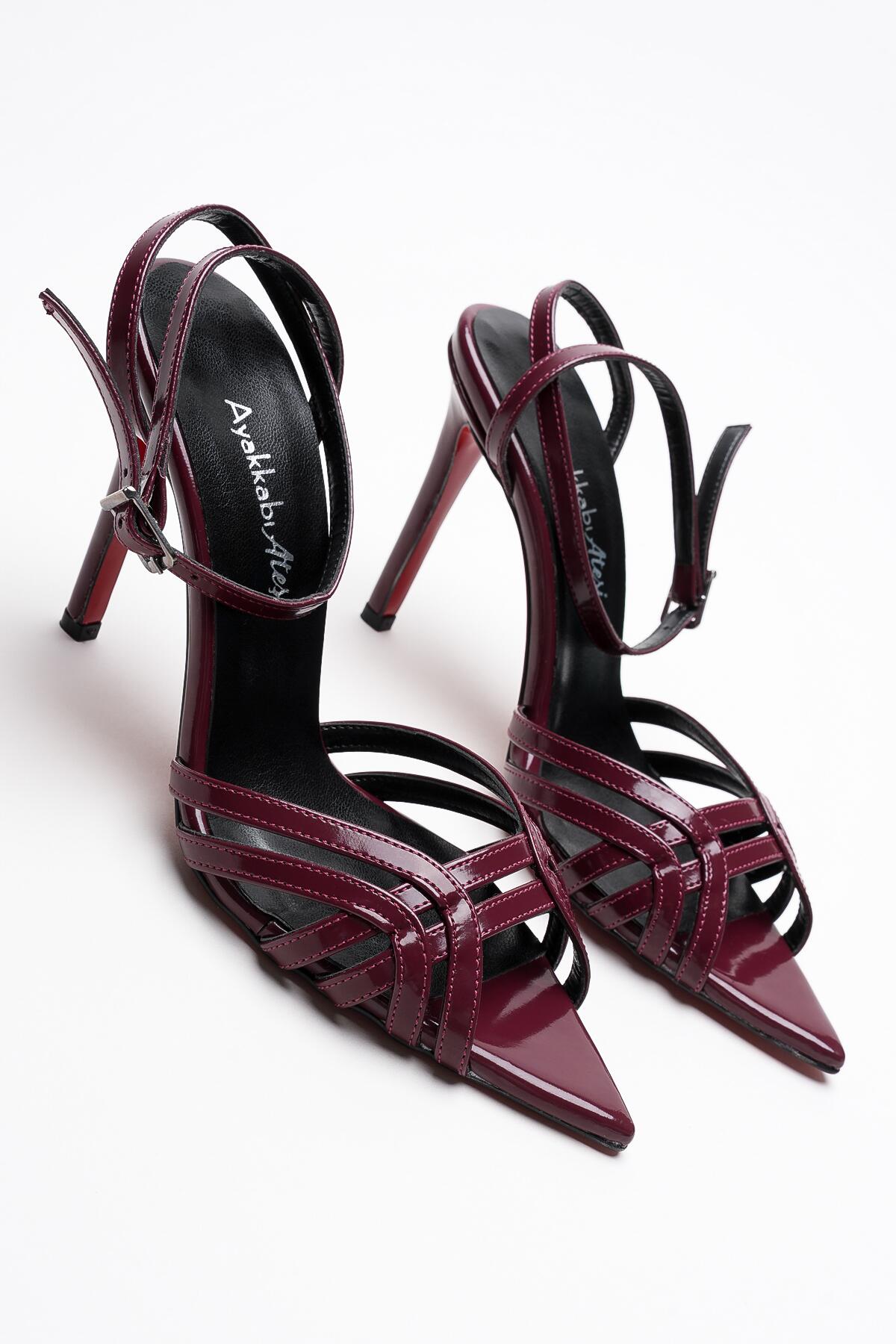 Kadın Açık Kafes Burun Tasarım İnce Topuklu Ayakkabı Prona Bordo