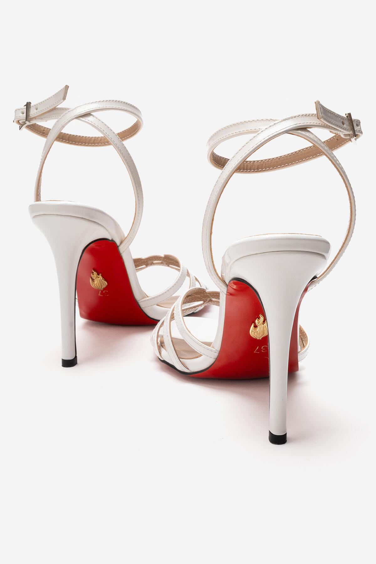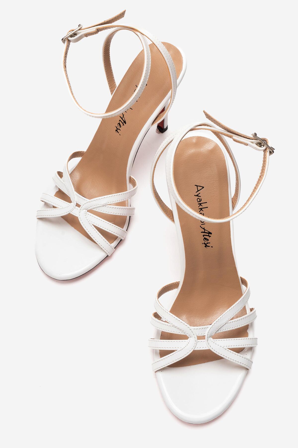 Kadın Açık Kafes Burun Tasarım İnce Topuklu Biyeli Ayakkabı Cage Beyaz Rugan