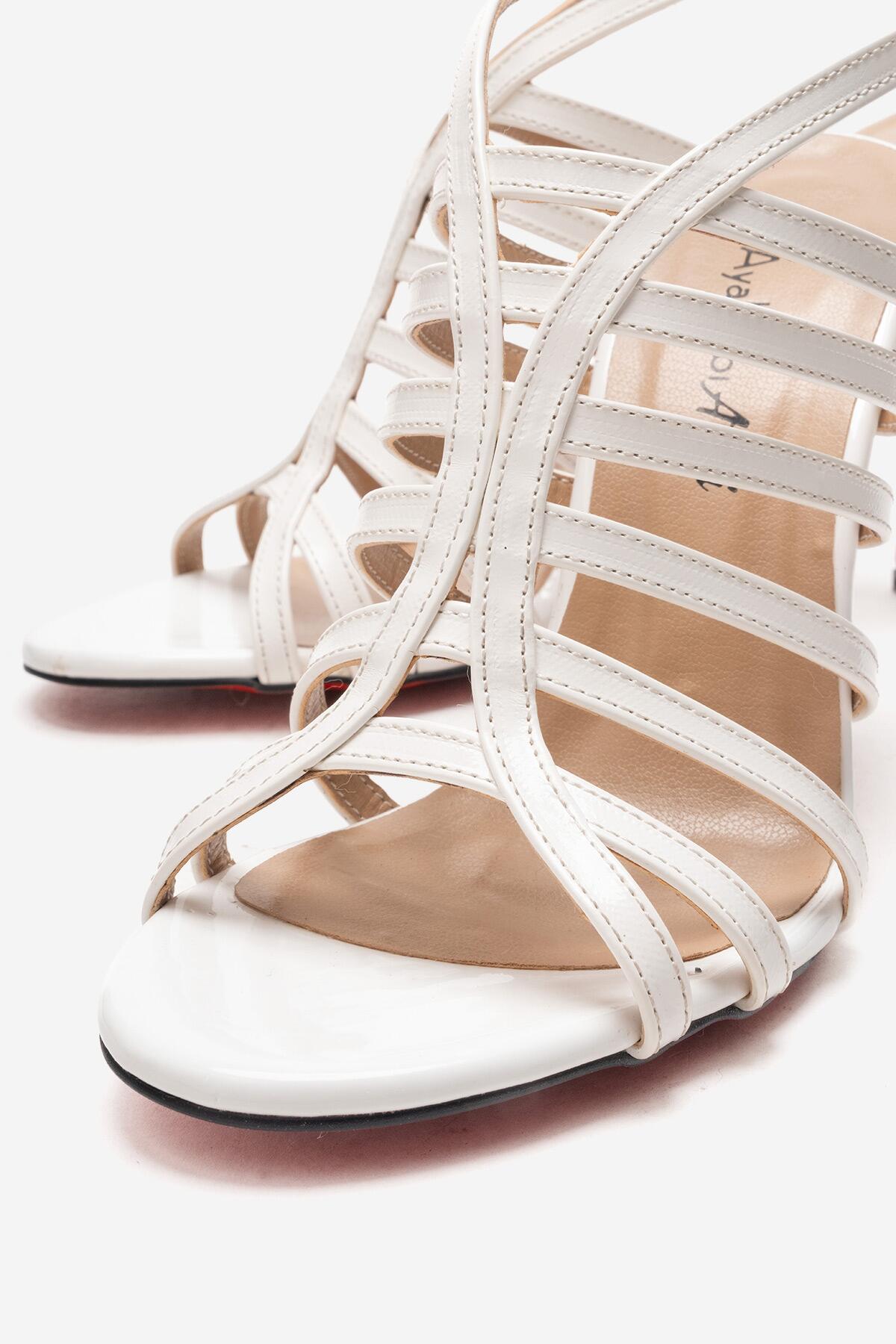 Kadın Açık Kafes Burun Tasarım İnce Topuklu Biyeli Ayakkabı Elo Beyaz Rugan