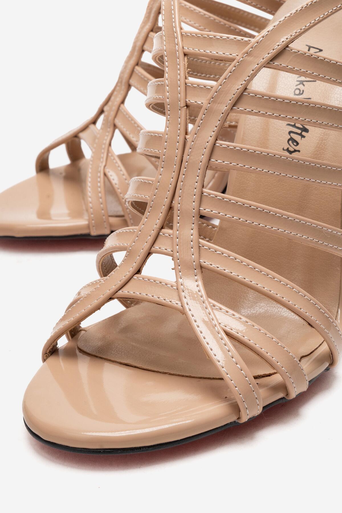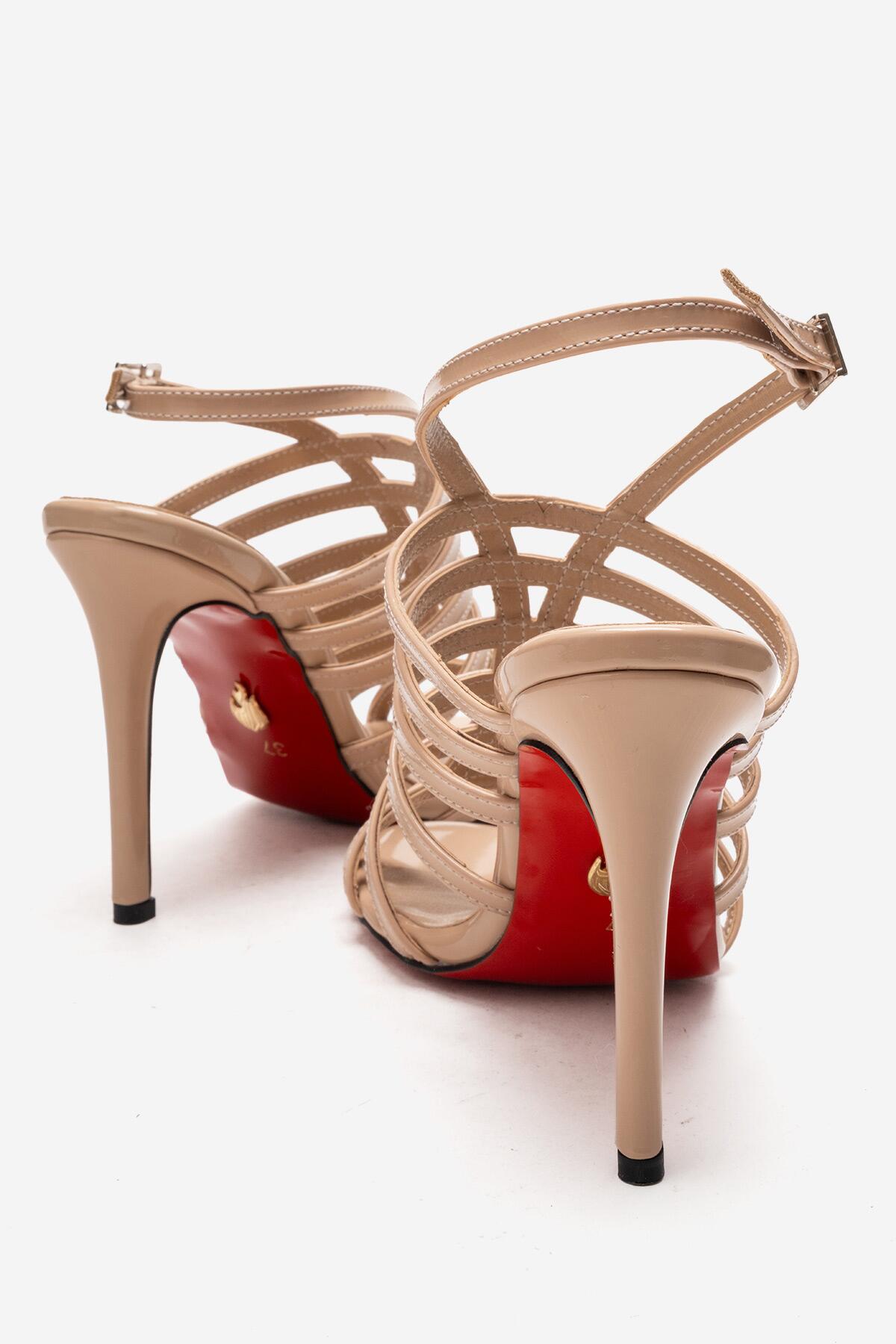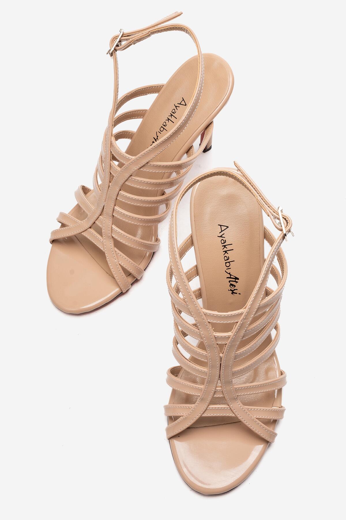 Kadın Açık Kafes Burun Tasarım İnce Topuklu Biyeli Ayakkabı Elo Nude Rugan