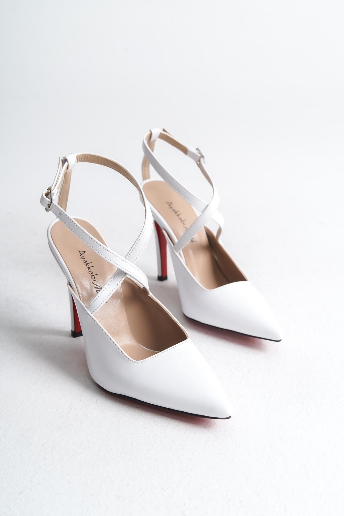 Kadın Arka Açık Tasarım İnce Topuklu Ayakkabı Rileyya Beyaz Rugan