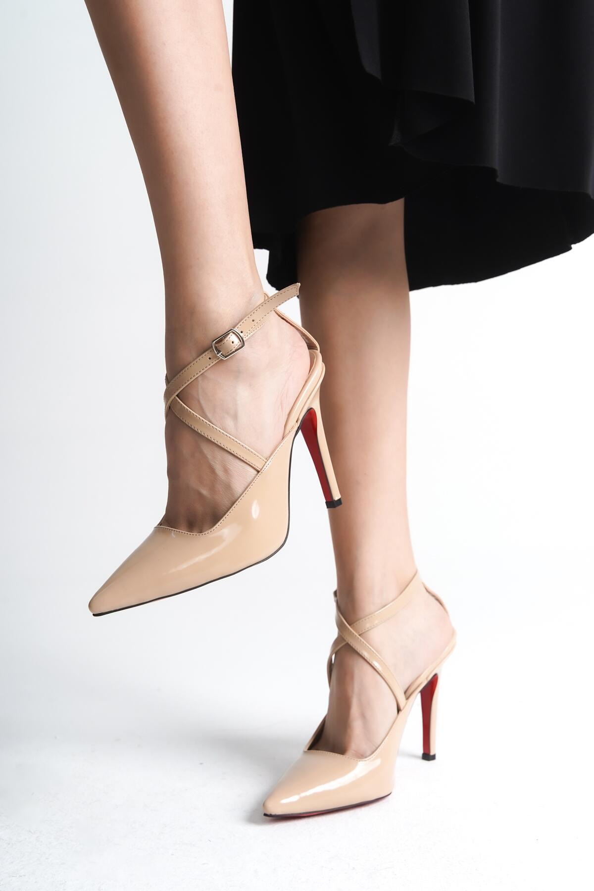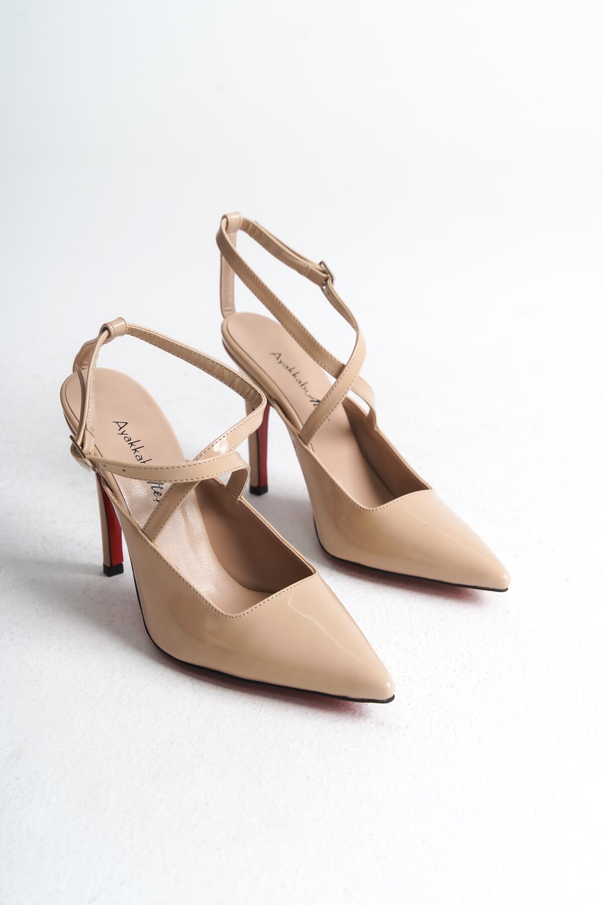 Kadın Arka Açık Tasarım İnce Topuklu Ayakkabı Nolera Nude Rugan