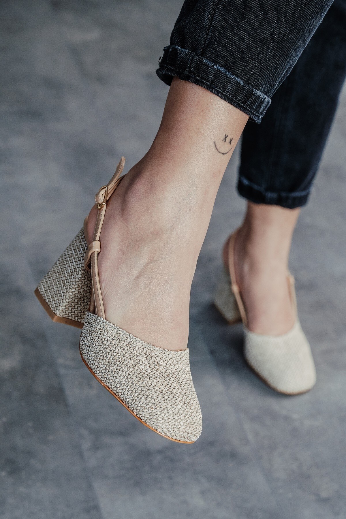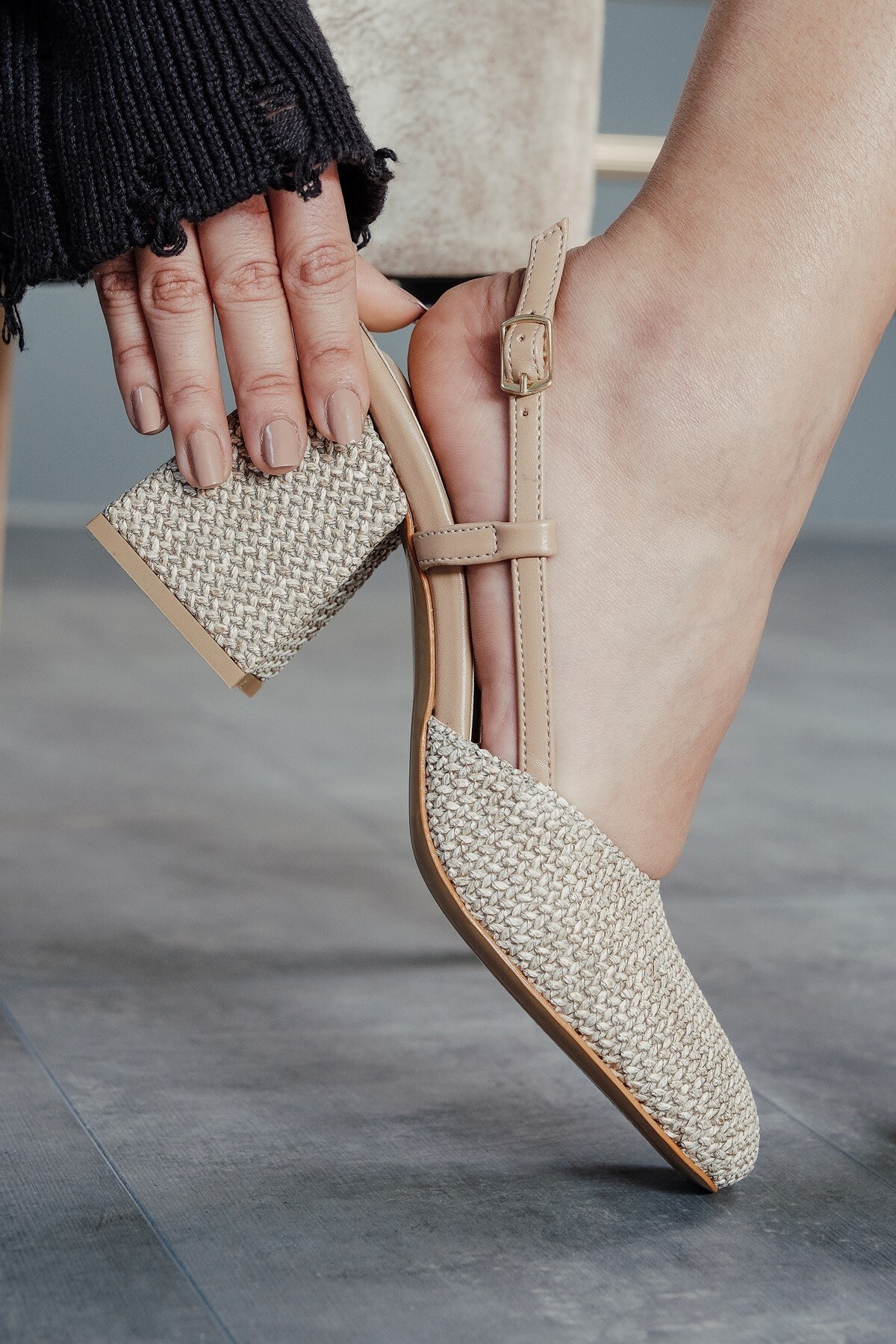 Kadın Baretli Hasır Cilt Kalın Topuklu Ayakkabı Niloya