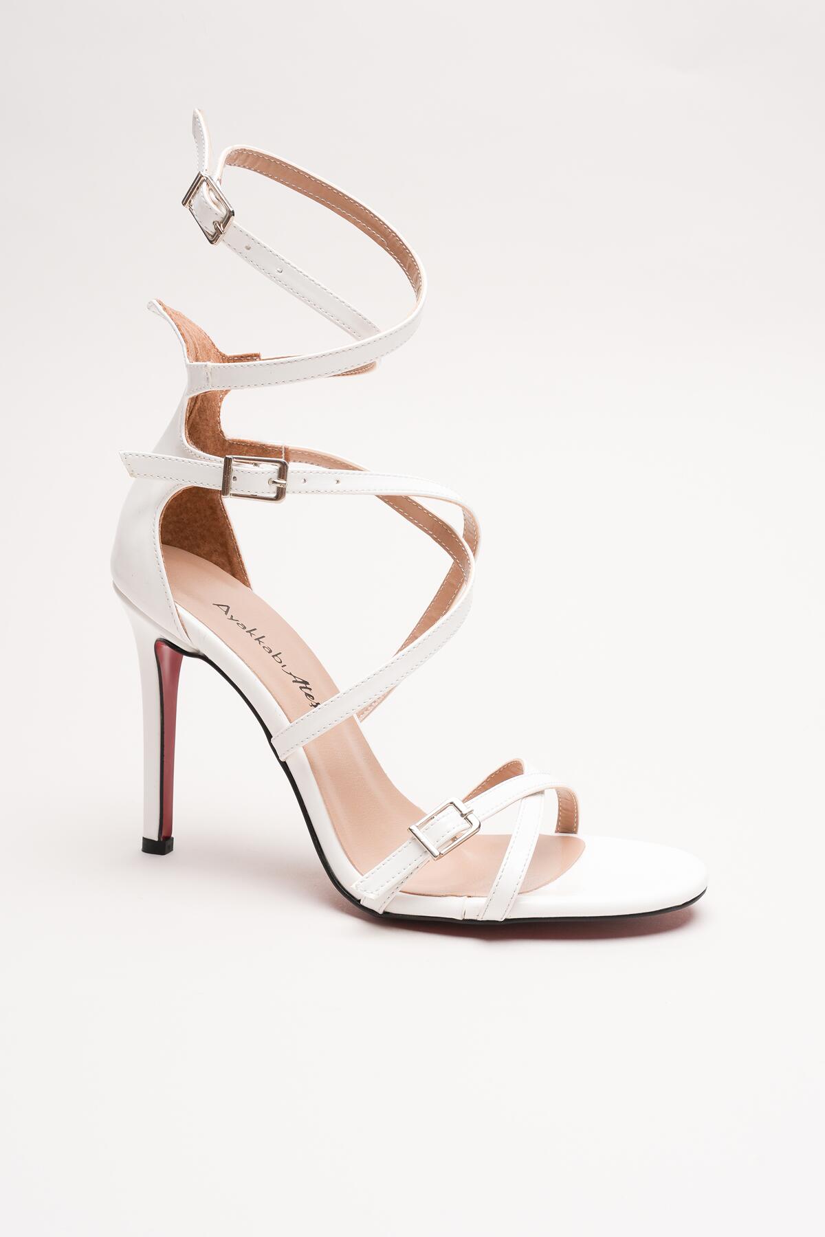 Kadın Biyeli Tokalı İnce Topuklu Ayakkabı Nela Beyaz Rugan
