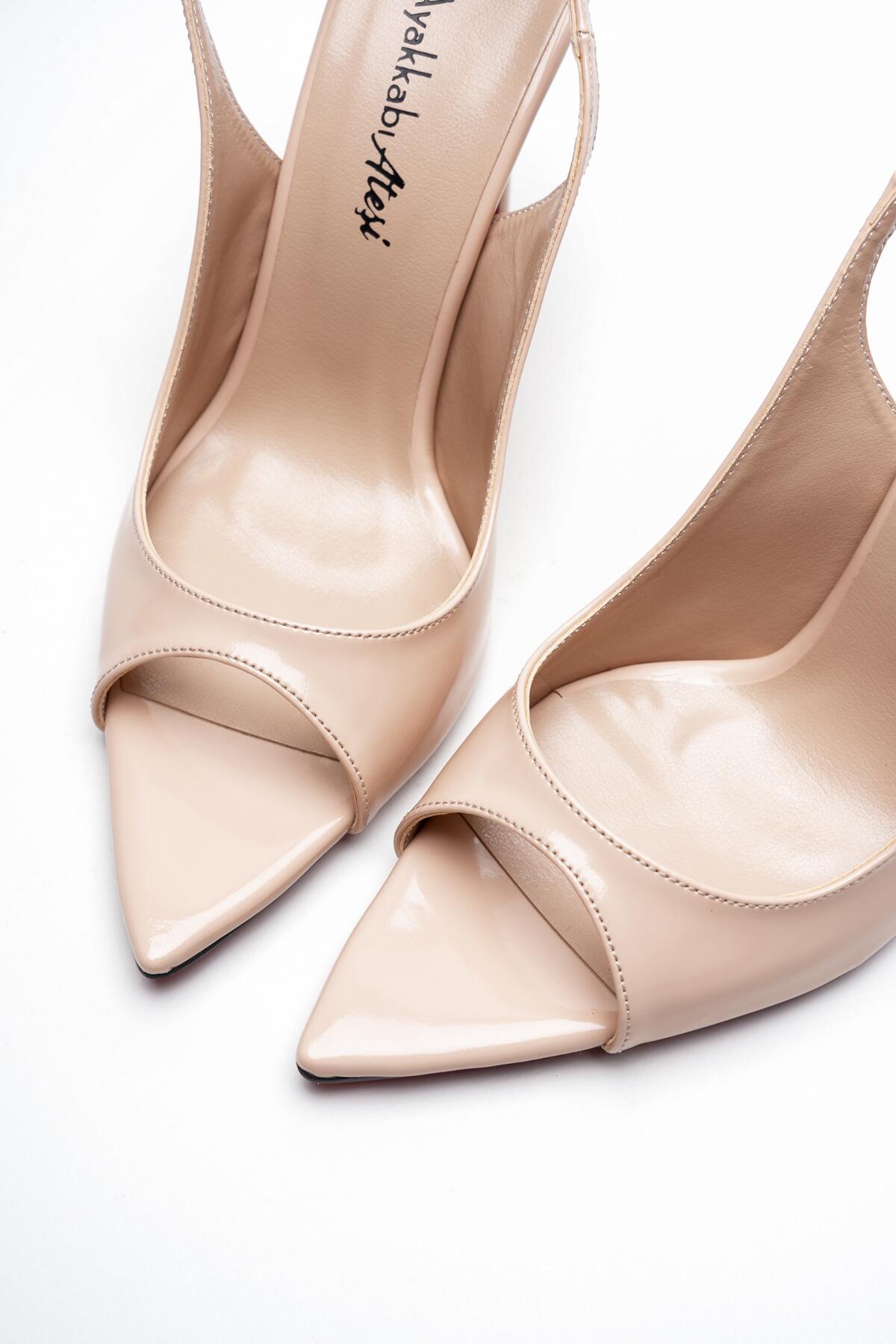 Kadın Burun Arka Açık İnce Topuklu Ayakkabı Acare Nude Rugan