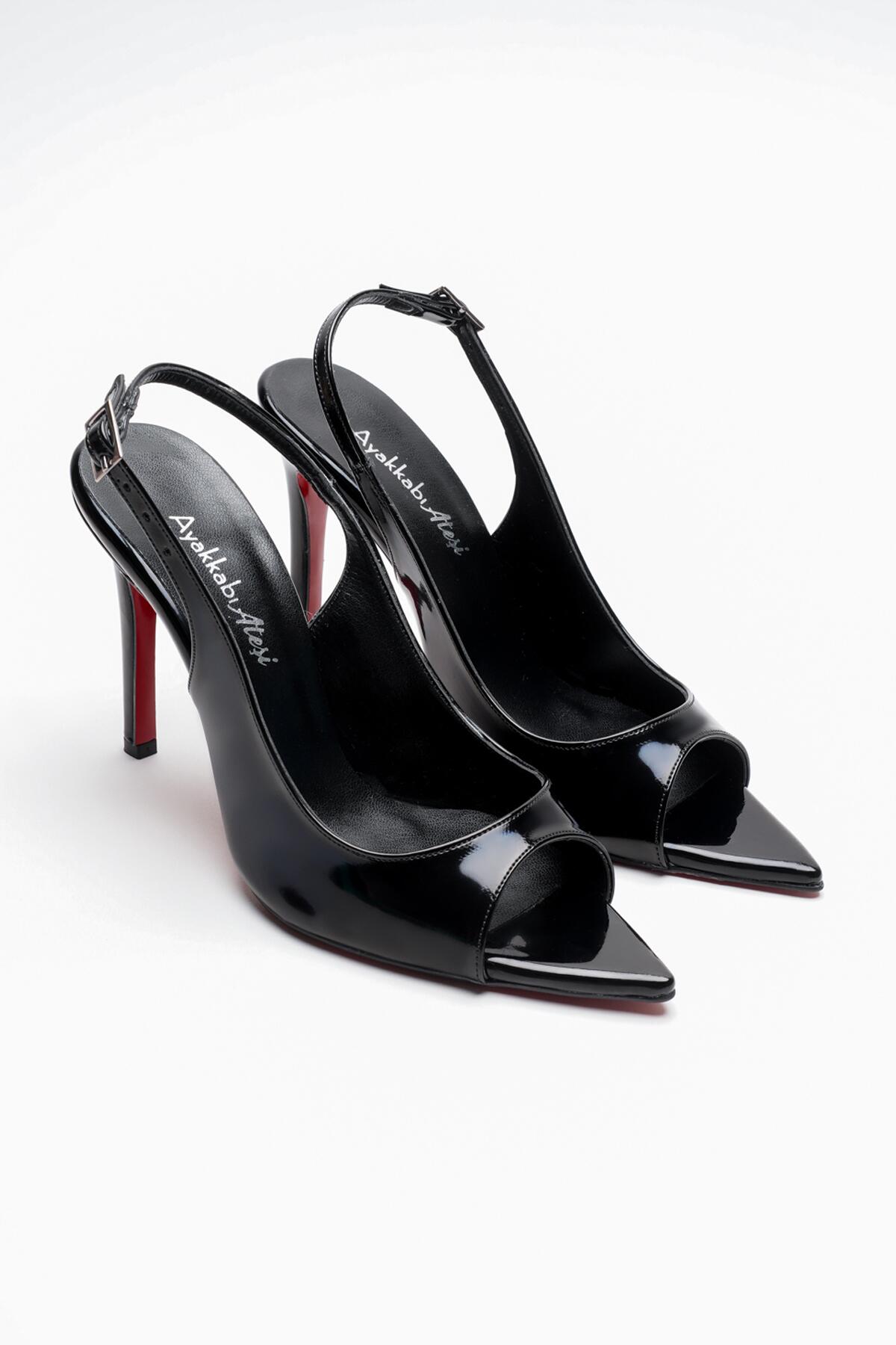 Kadın Burun Arka Açık İnce Topuklu Ayakkabı Acare Siyah Rugan