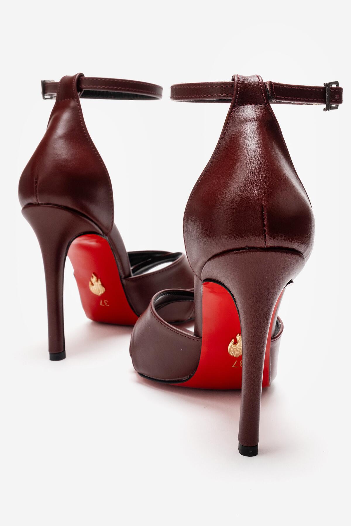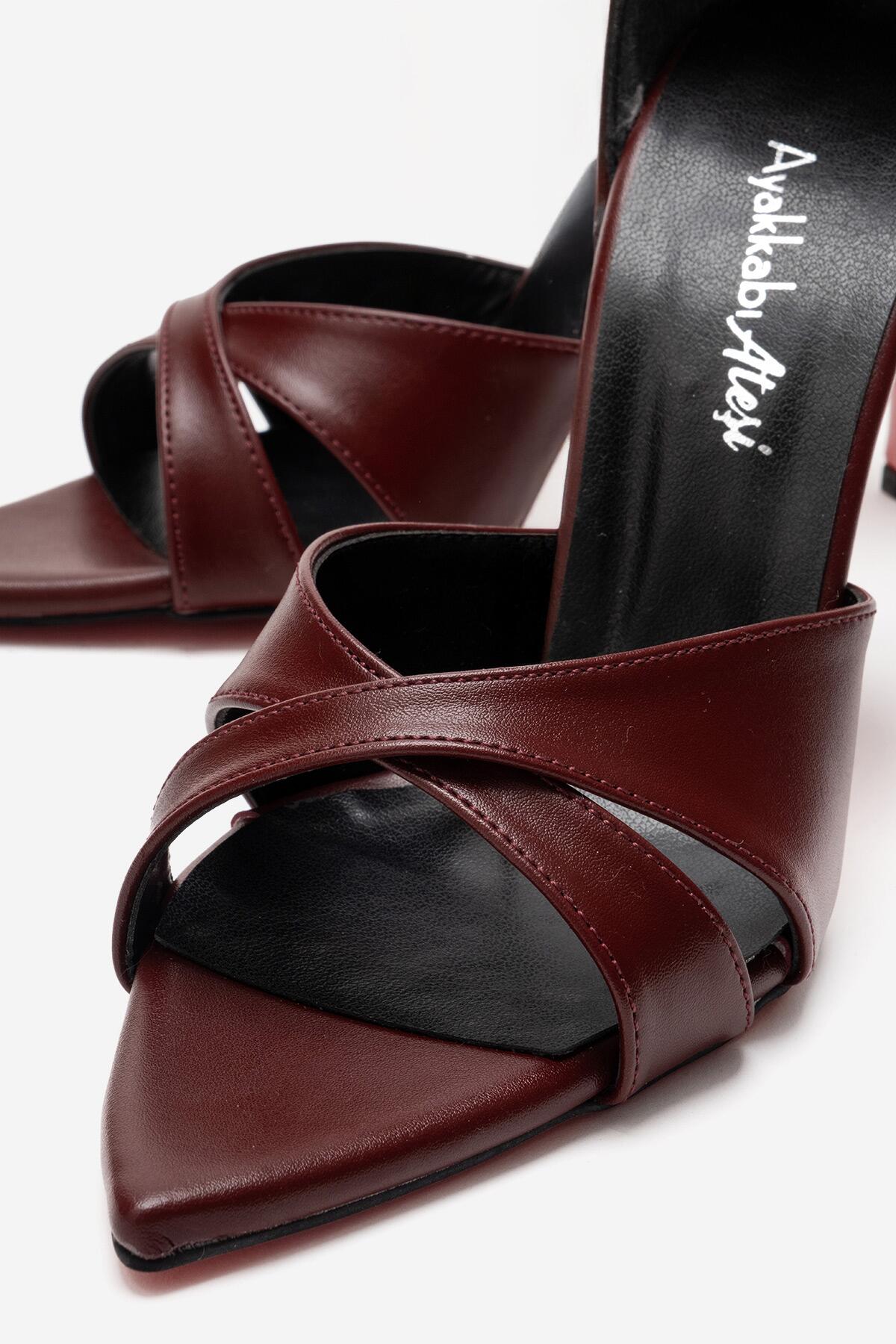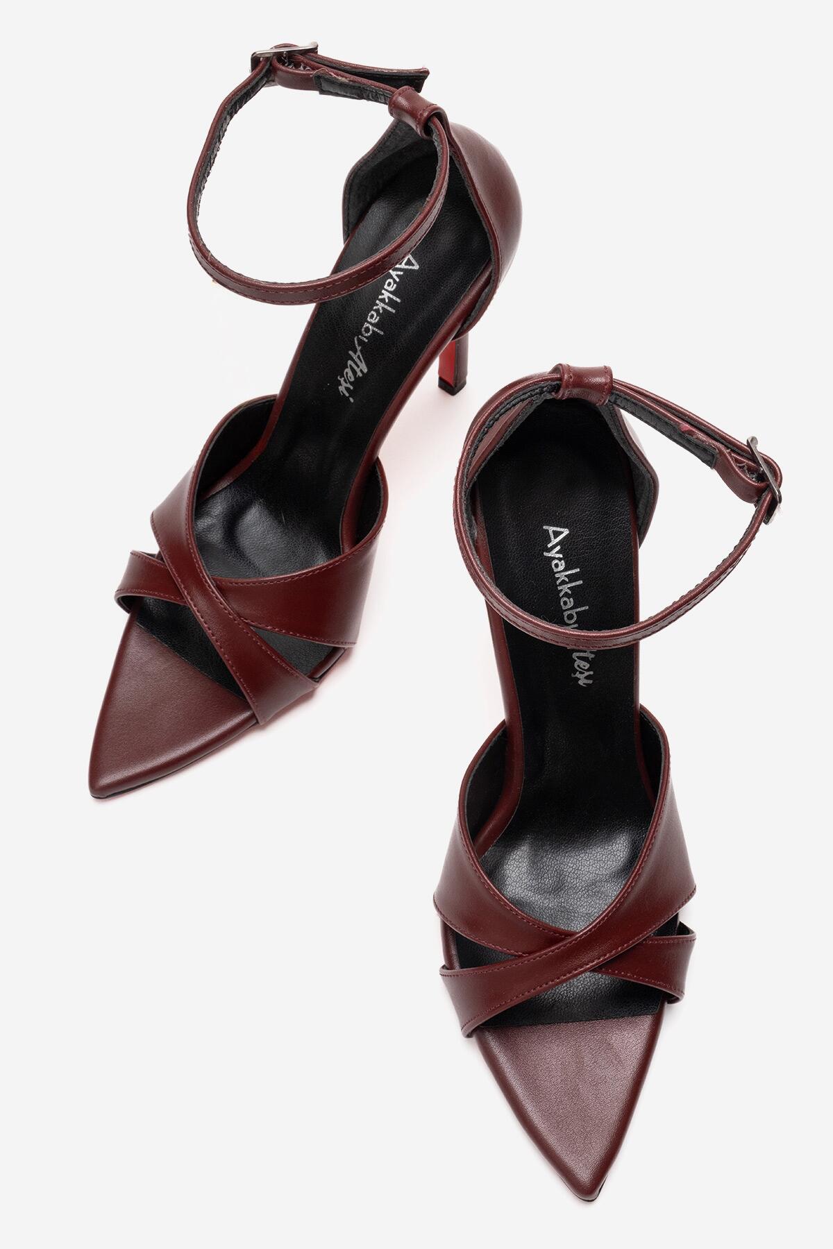 Kadın Çapraz Bantlı Bilekten Bağlamalı Stiletto Topuklu Ayakkabı Sorie Bordo Cilt