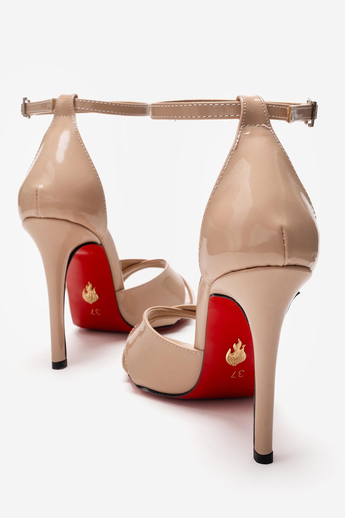 Kadın Çapraz Bantlı Bilekten Bağlamalı Stiletto Topuklu Ayakkabı Sorie Nude Rugan