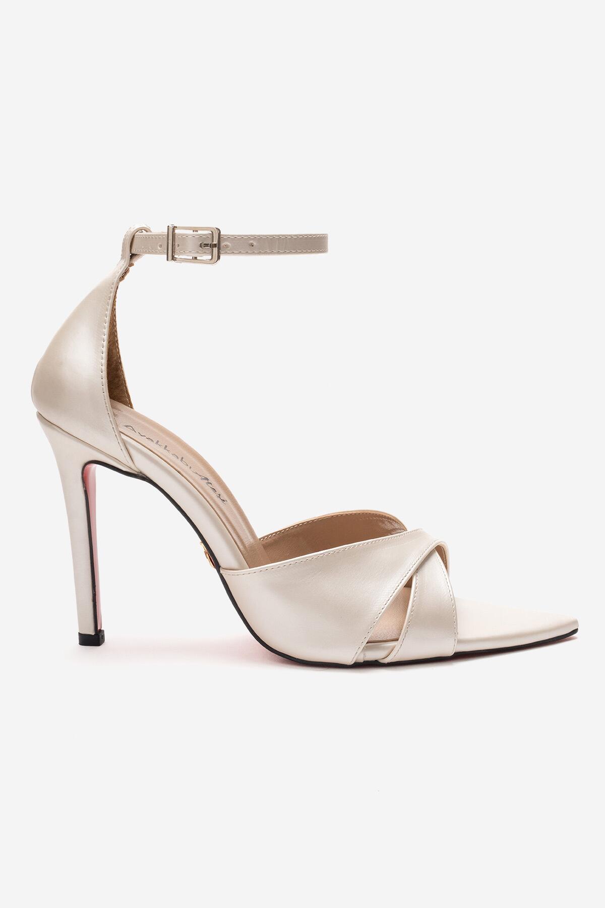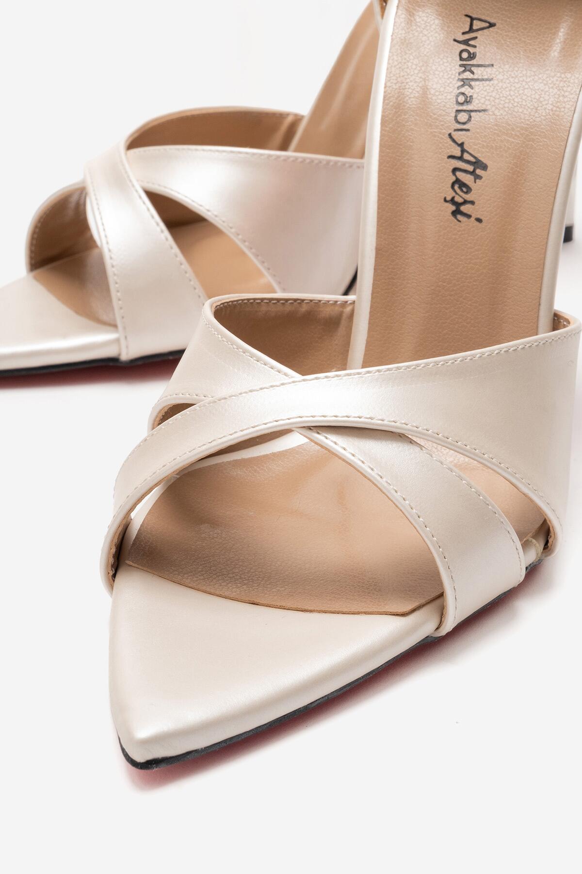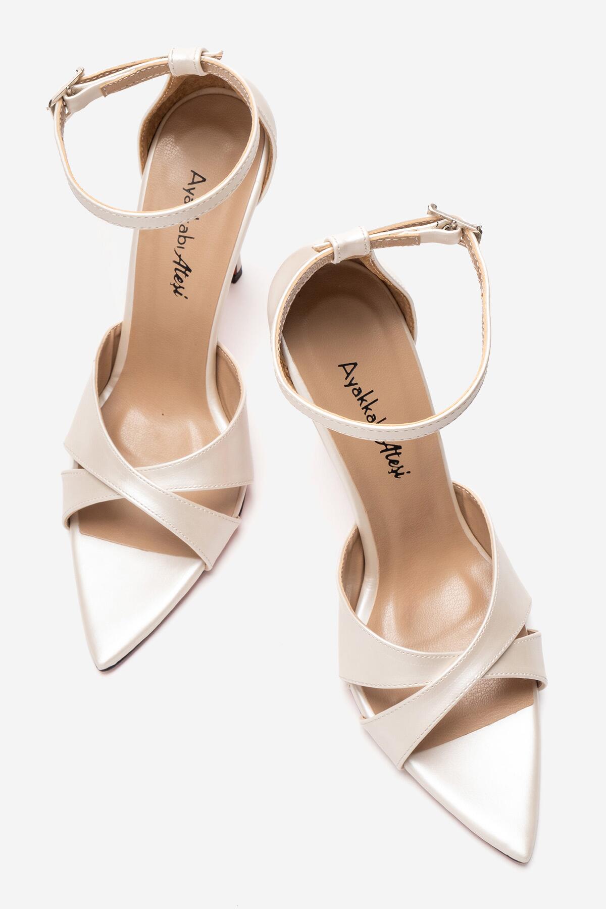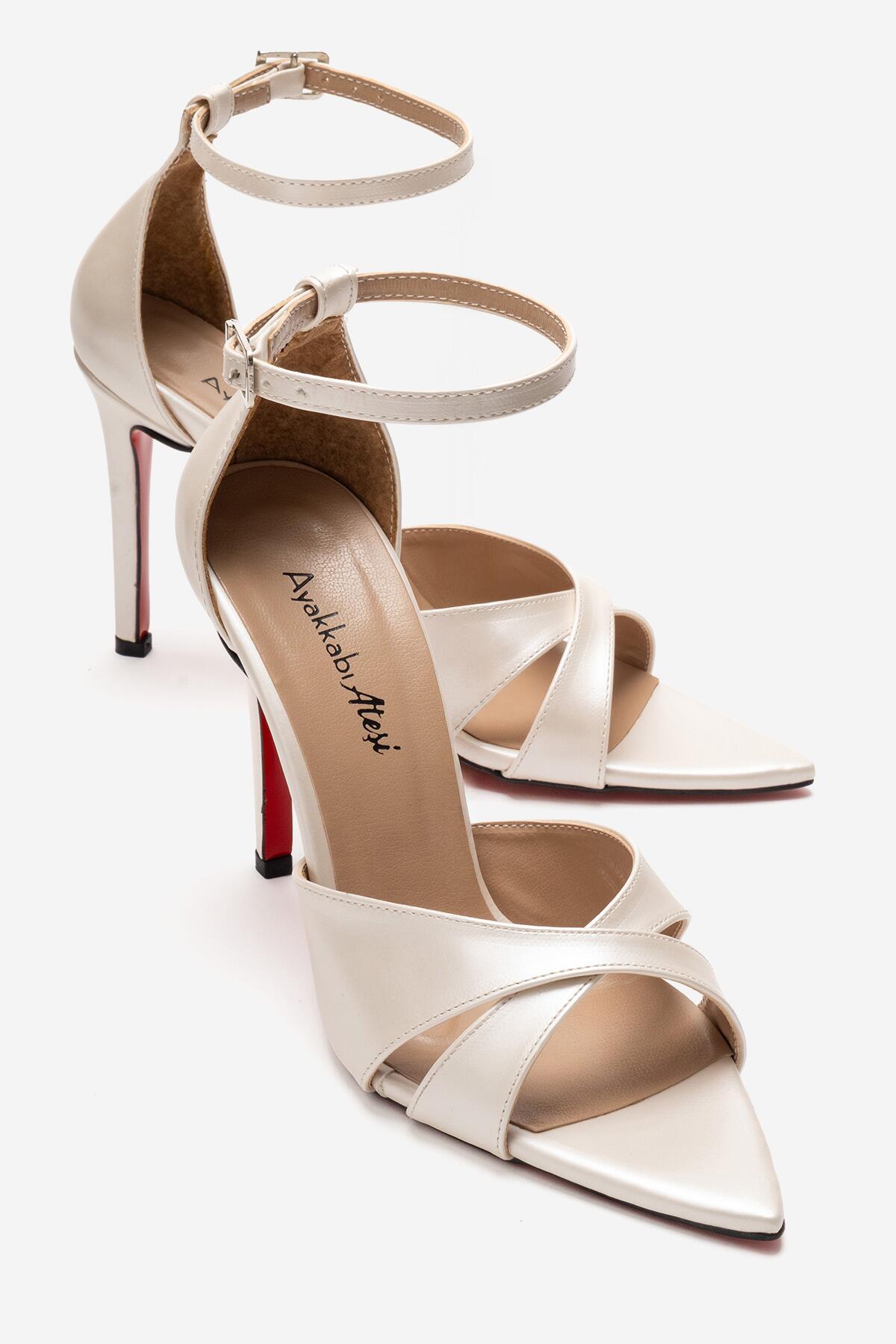 Kadın Çapraz Bantlı Bilekten Bağlamalı Stiletto Topuklu Ayakkabı Sorie Sedef