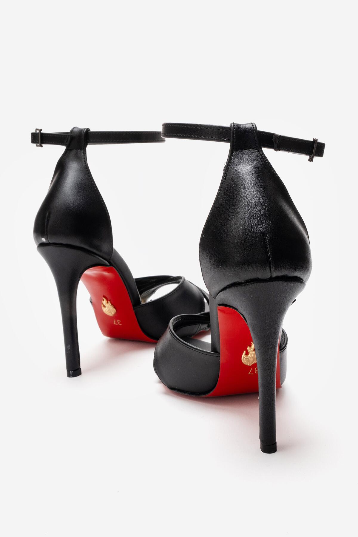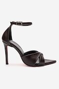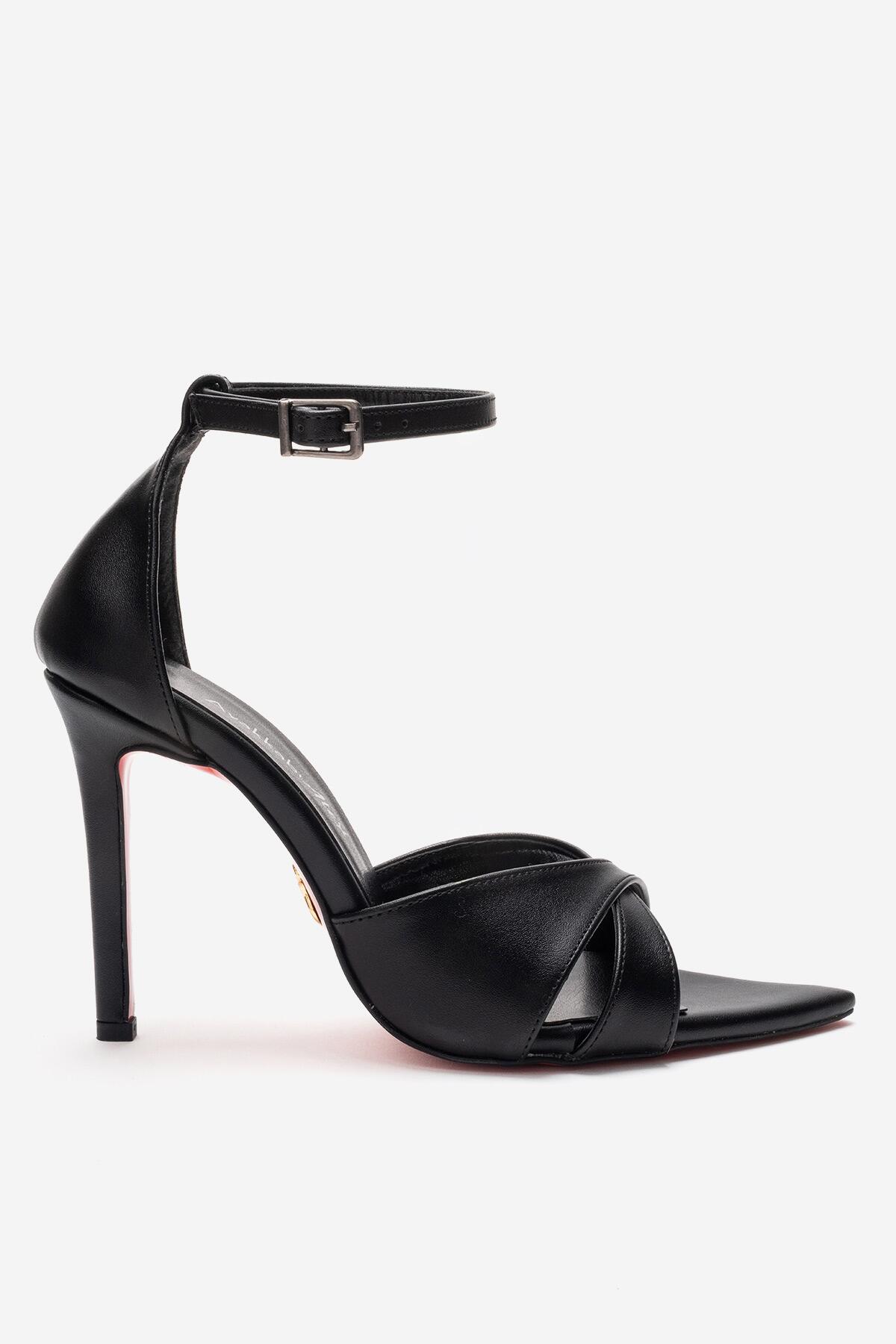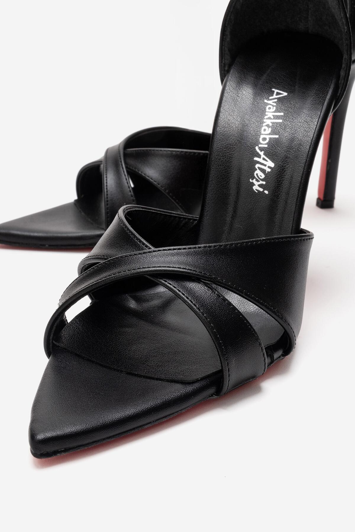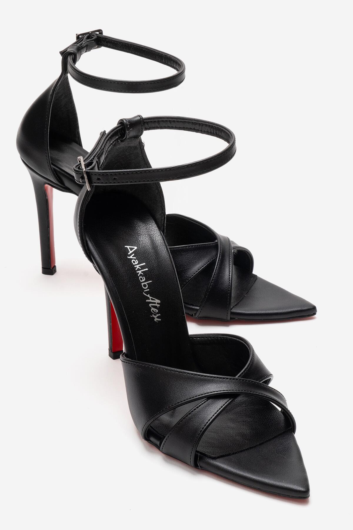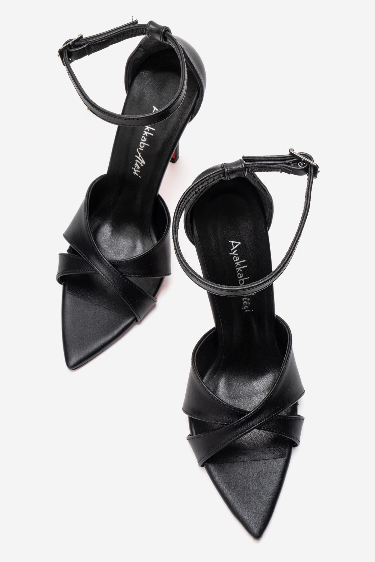Kadın Çapraz Bantlı Bilekten Bağlamalı Stiletto Topuklu Ayakkabı Sorie Siyah Cilt