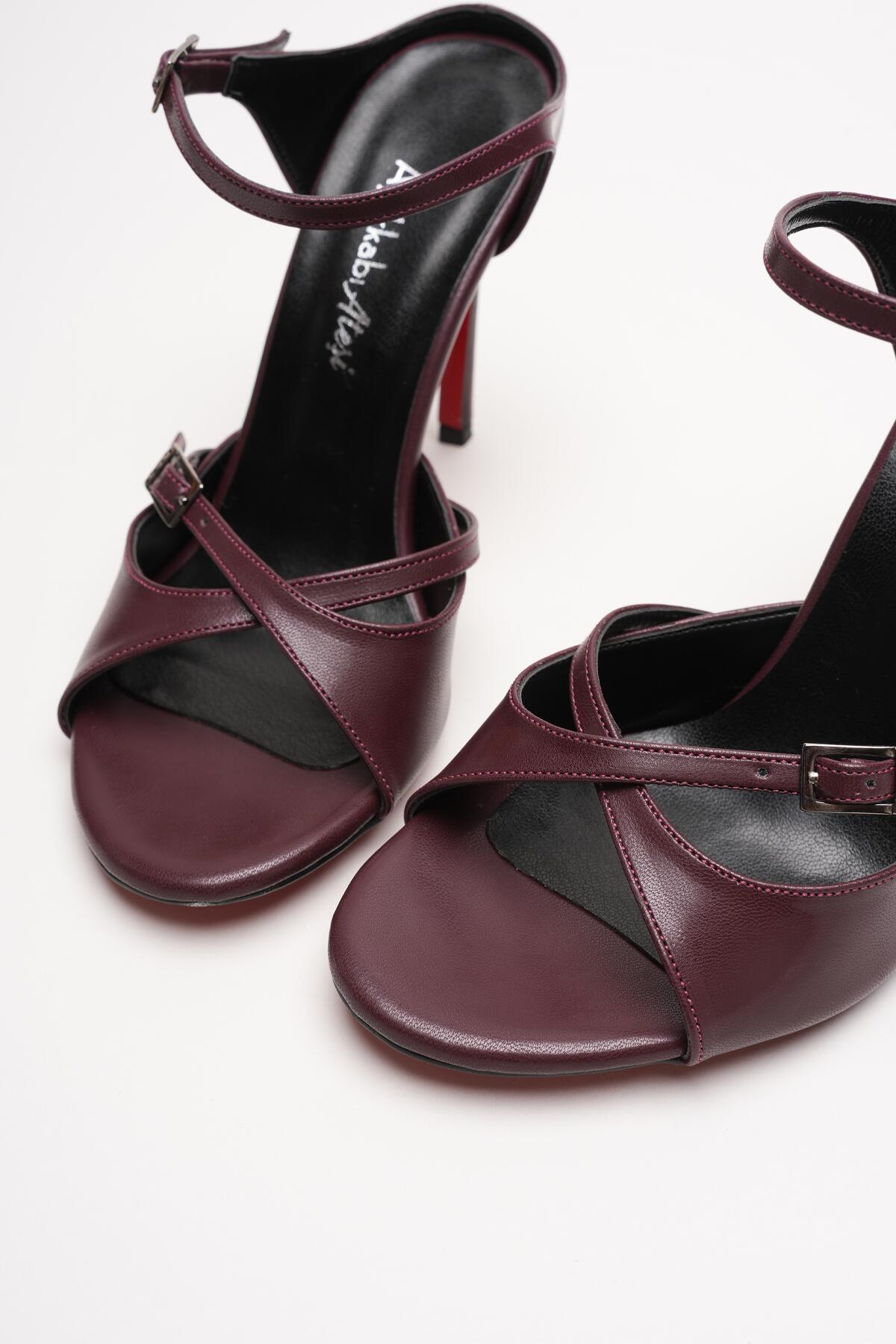 Kadın Çift Bantlı Tasarım Topuklu Ayakkabı Liona Bordo Cilt