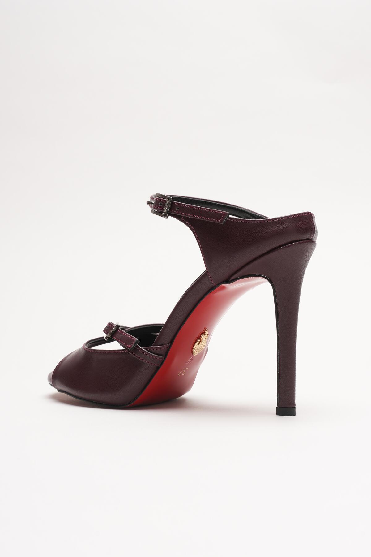 Kadın Çift Bantlı Tasarım Topuklu Ayakkabı Liona Bordo Cilt