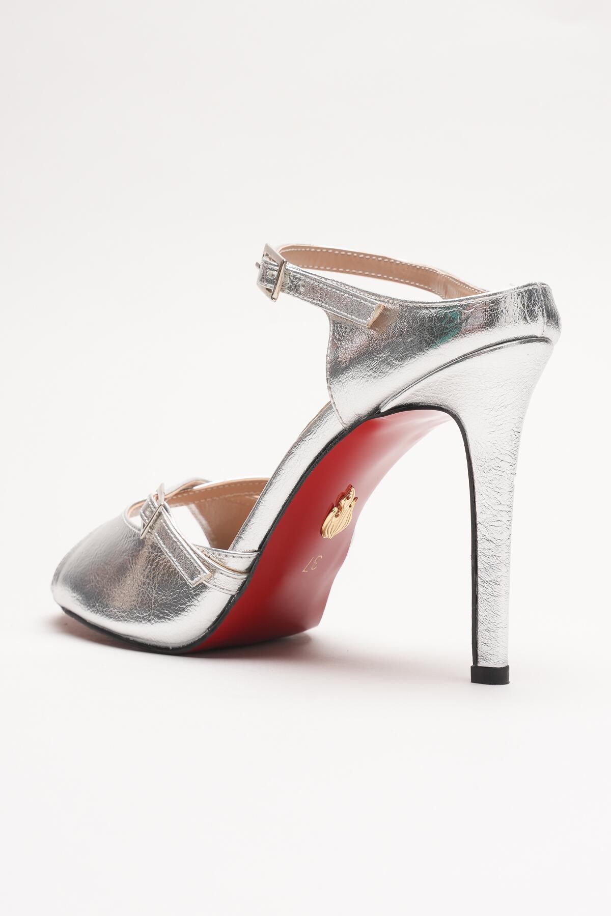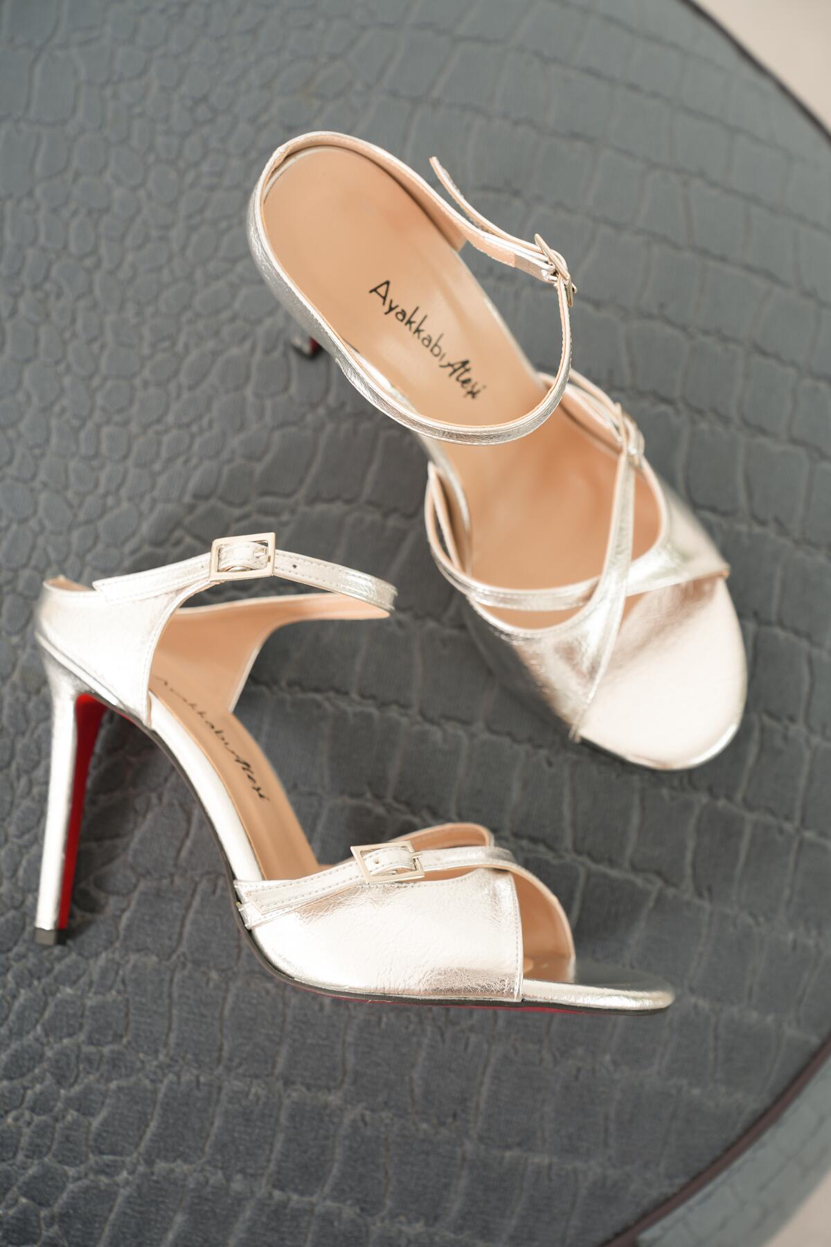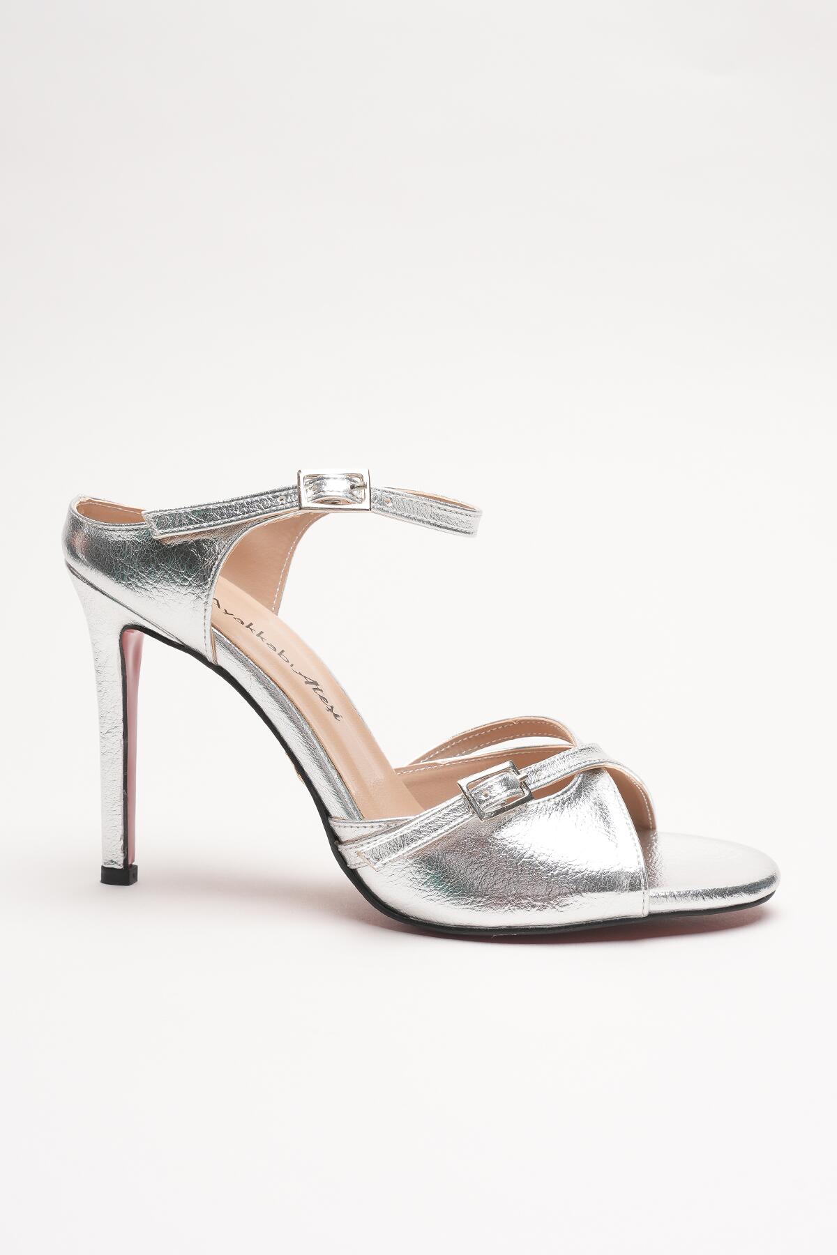Kadın Çift Bantlı Tasarım Topuklu Ayakkabı Liona Gümüş