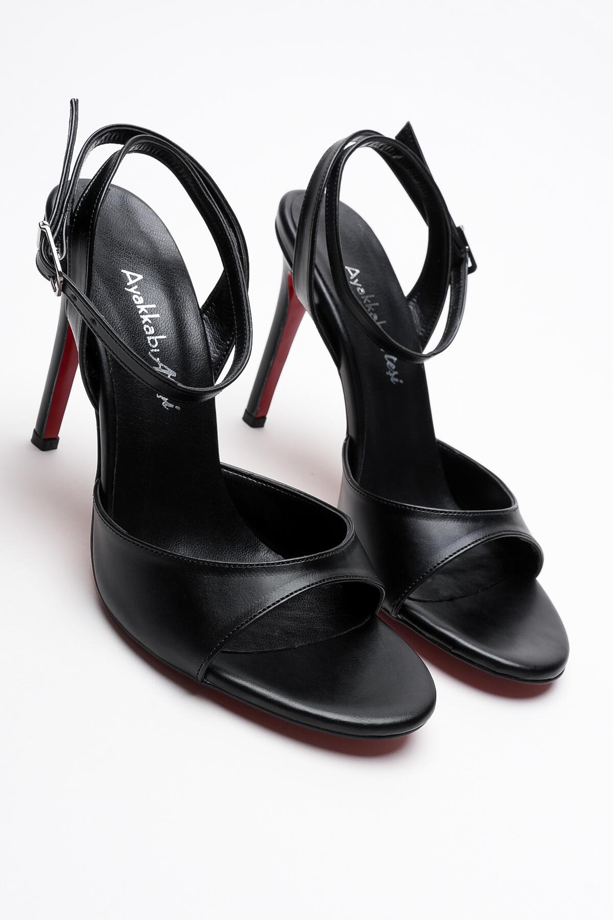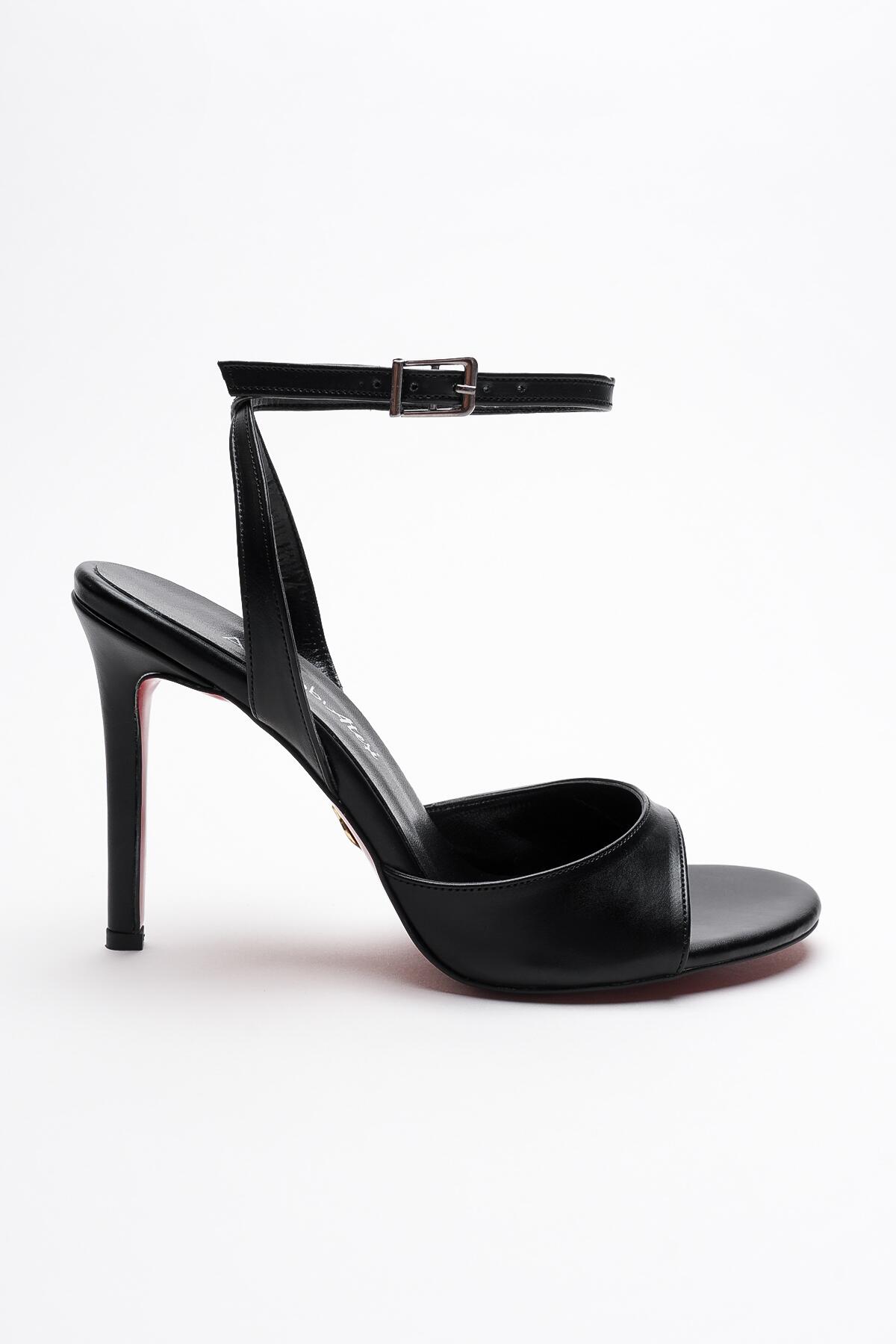 Kadın İnce Bant Arka Baretli Topuklu Ayakkabı Livora Siyah Cilt