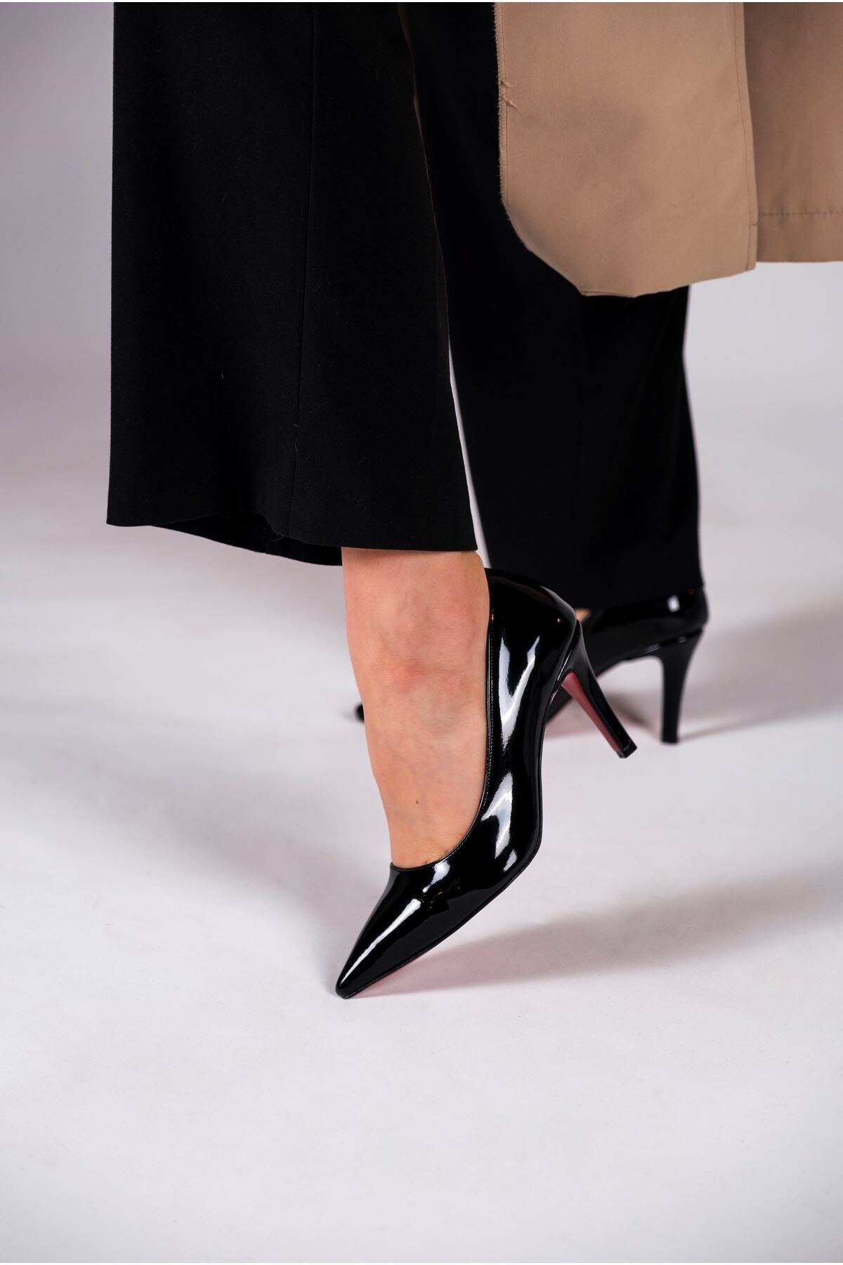 Kadın İnce Topuklu Ayakkabı Stiletto Demure Siyah Rugan