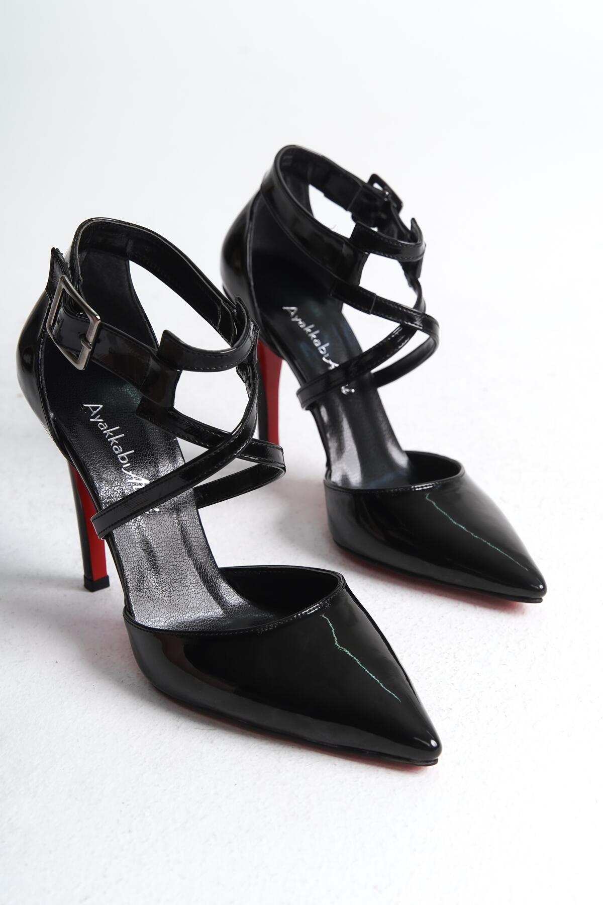 Kadın İnce Topuklu Ayakkabı Stiletto Edrie Siyah Rugan