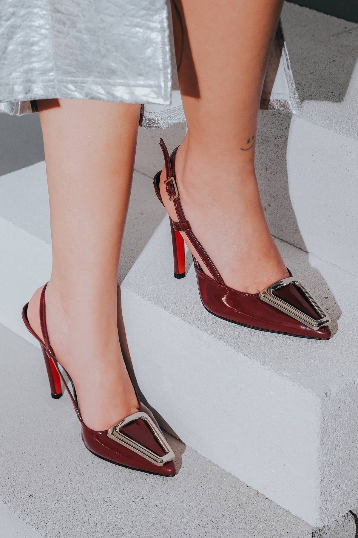 Kadın Özel Tokalı İnce Topuklu Ayakkabı Tina Bordo Cilt