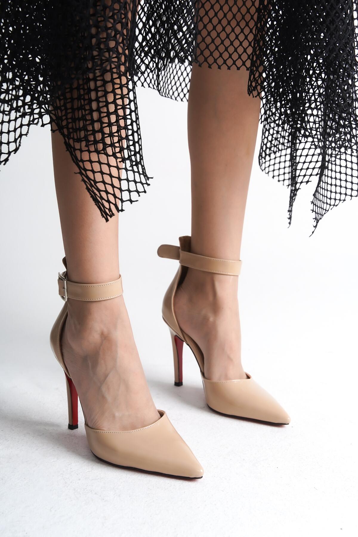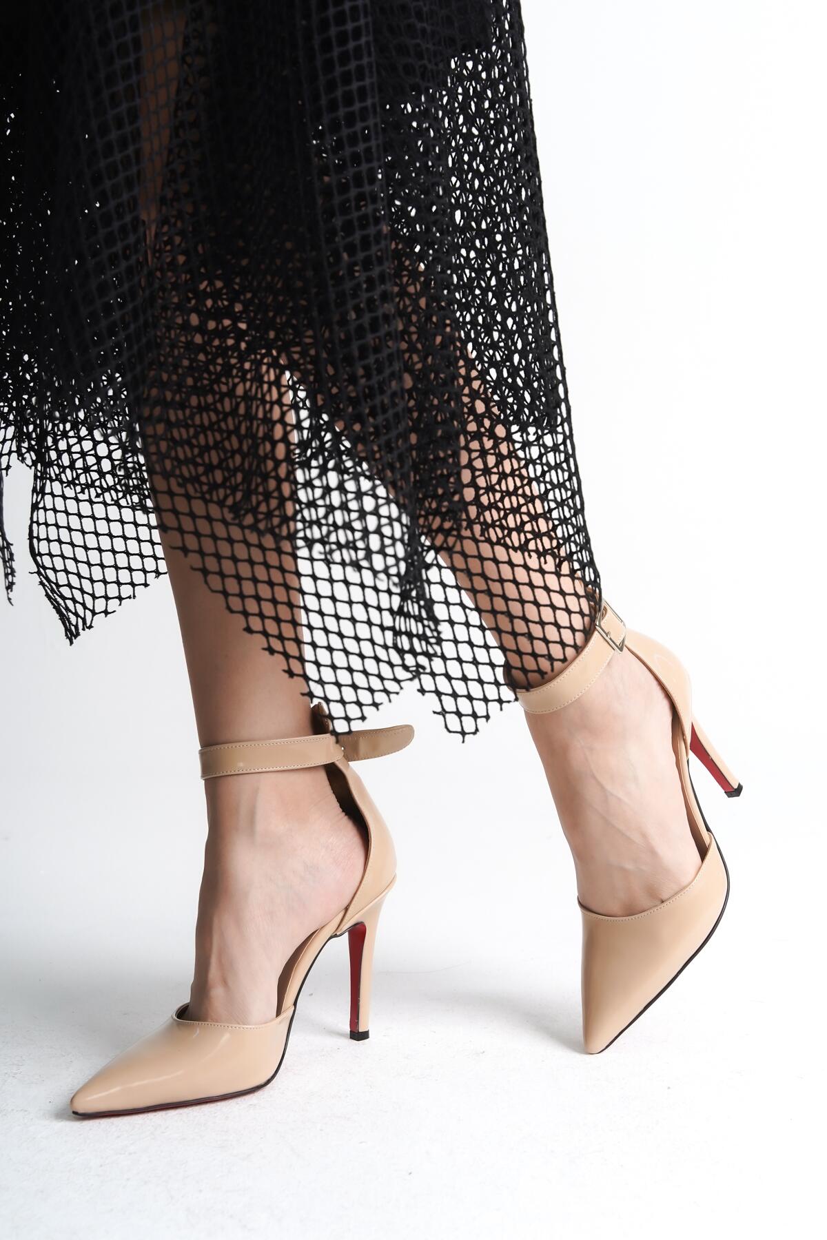 Kadın Sivri Burun İnce Topuklu Ayakkabı Sage Nude Rugan