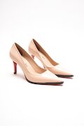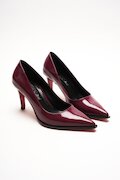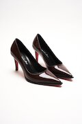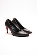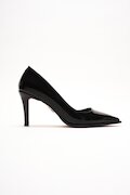Kadın Sivri Burun Tasarım Taban İnce Kısa Topuklu Ayakkabı Gronia Siyah Cilt