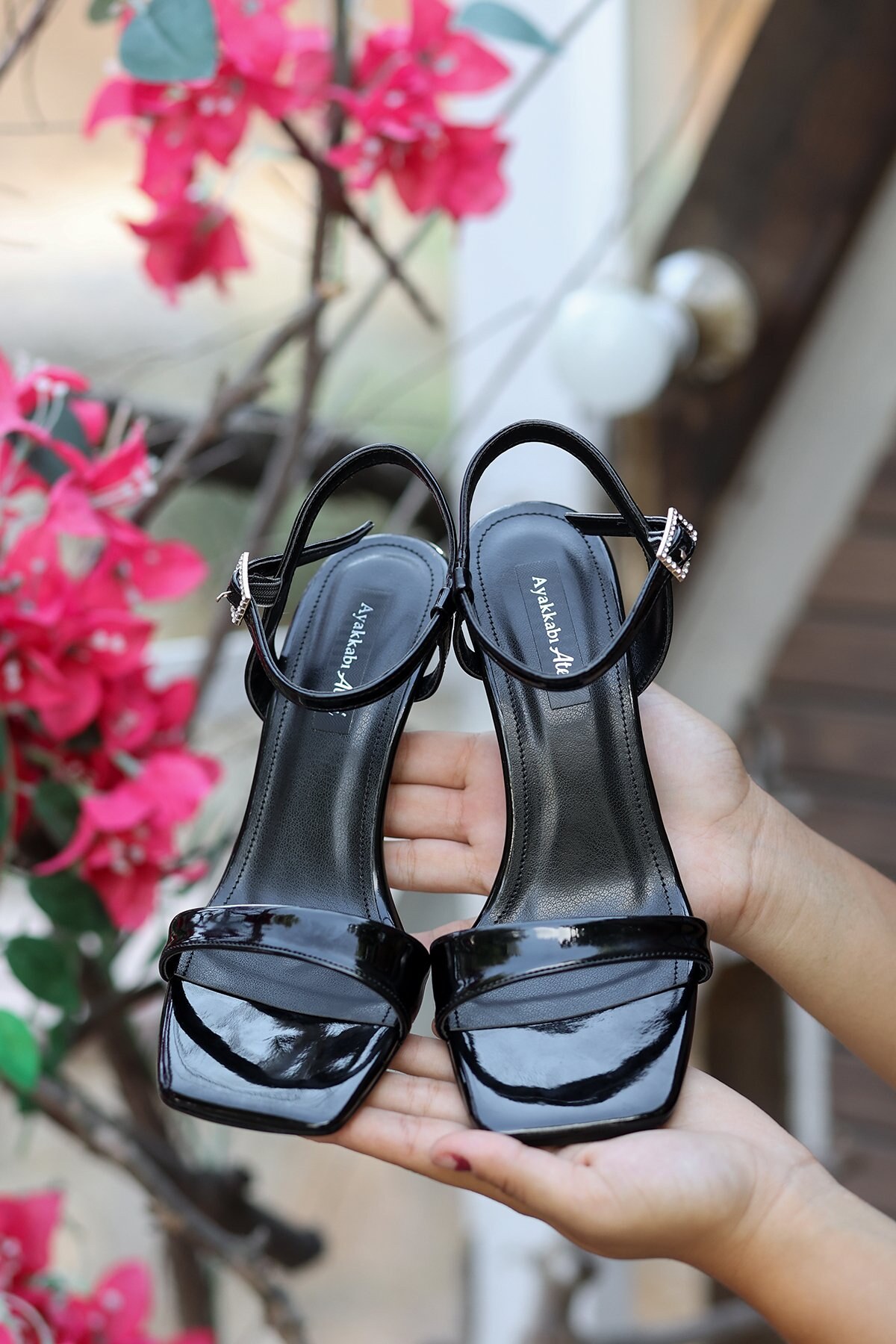 Kadın Taş Topuklu Ayakkabı Missa Siyah Rugan