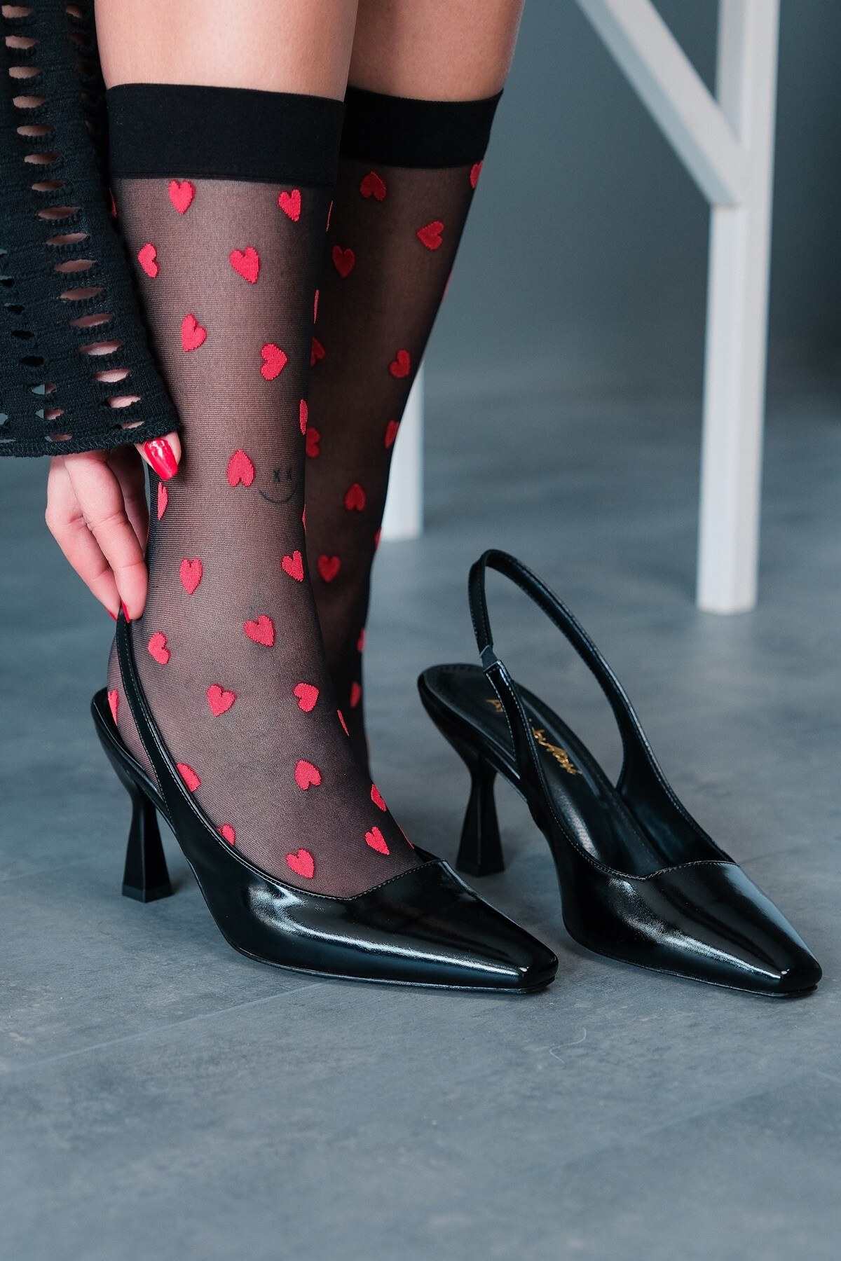 Siyah Arkası Açık Tasarım Kadın Topuklu Ayakkabı Simera Siyah