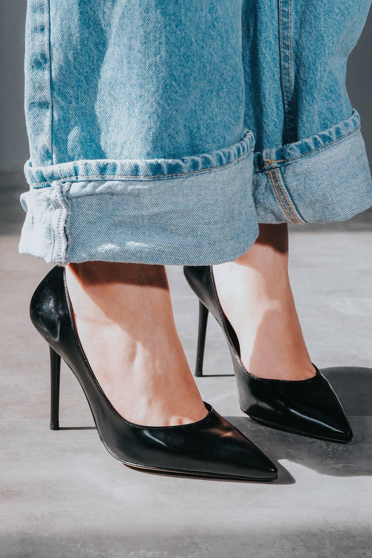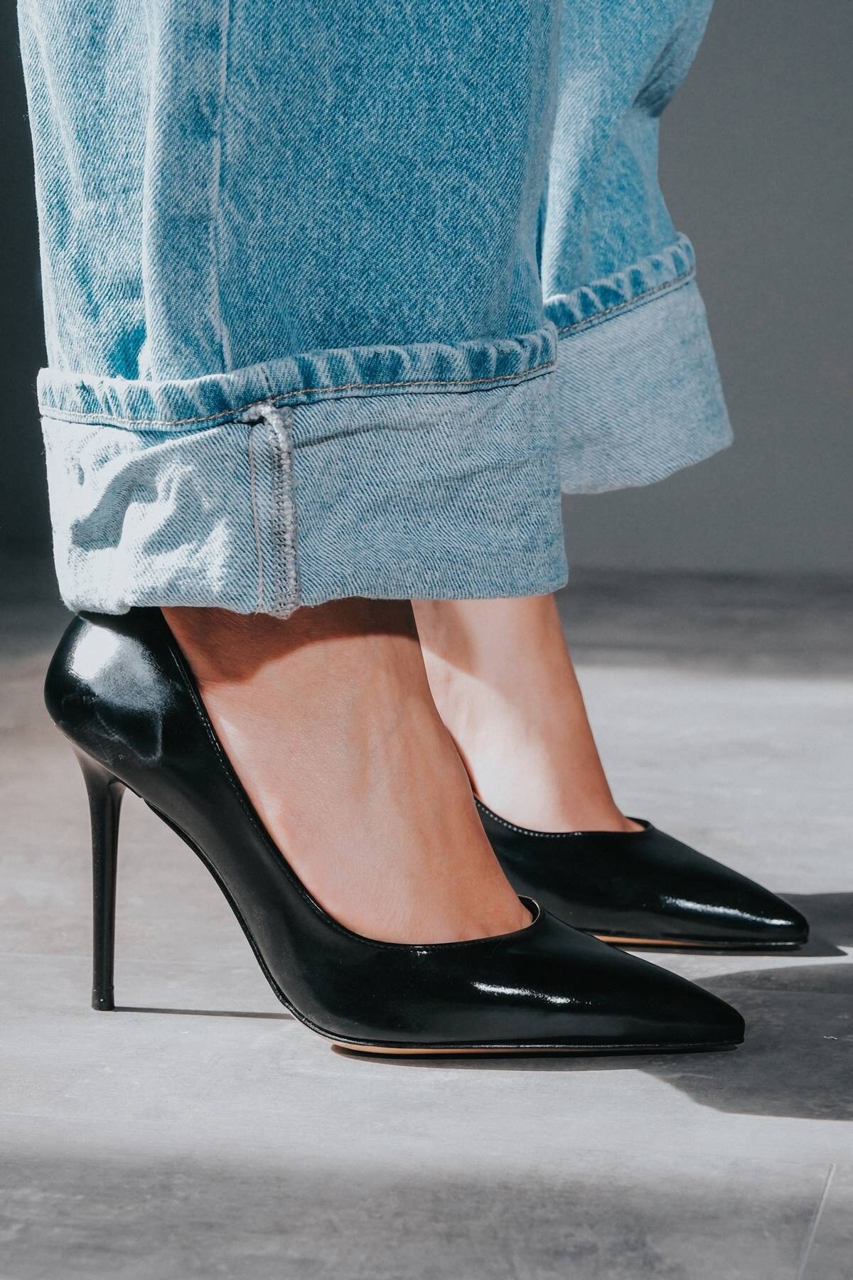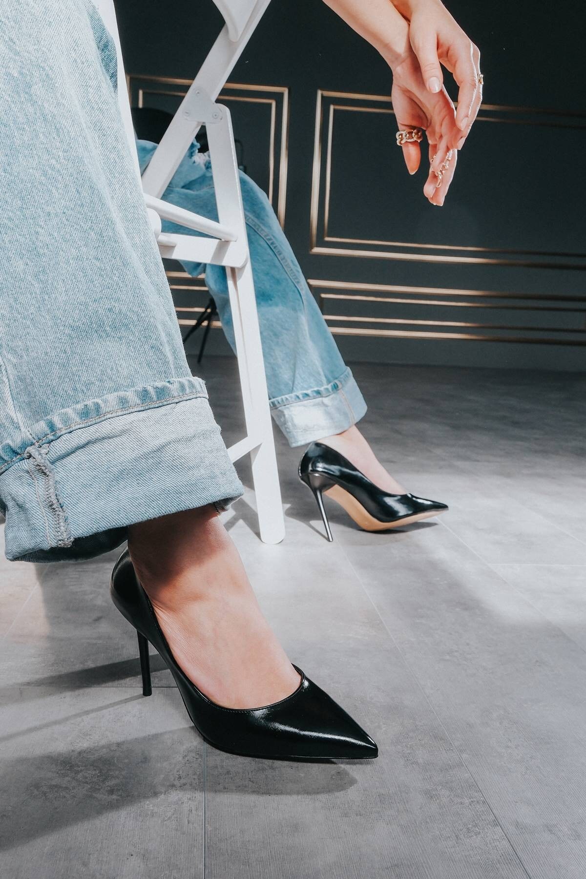 Siyah İnce Topuk Sivri Burunlu Kadın Stiletto Osama Siyah