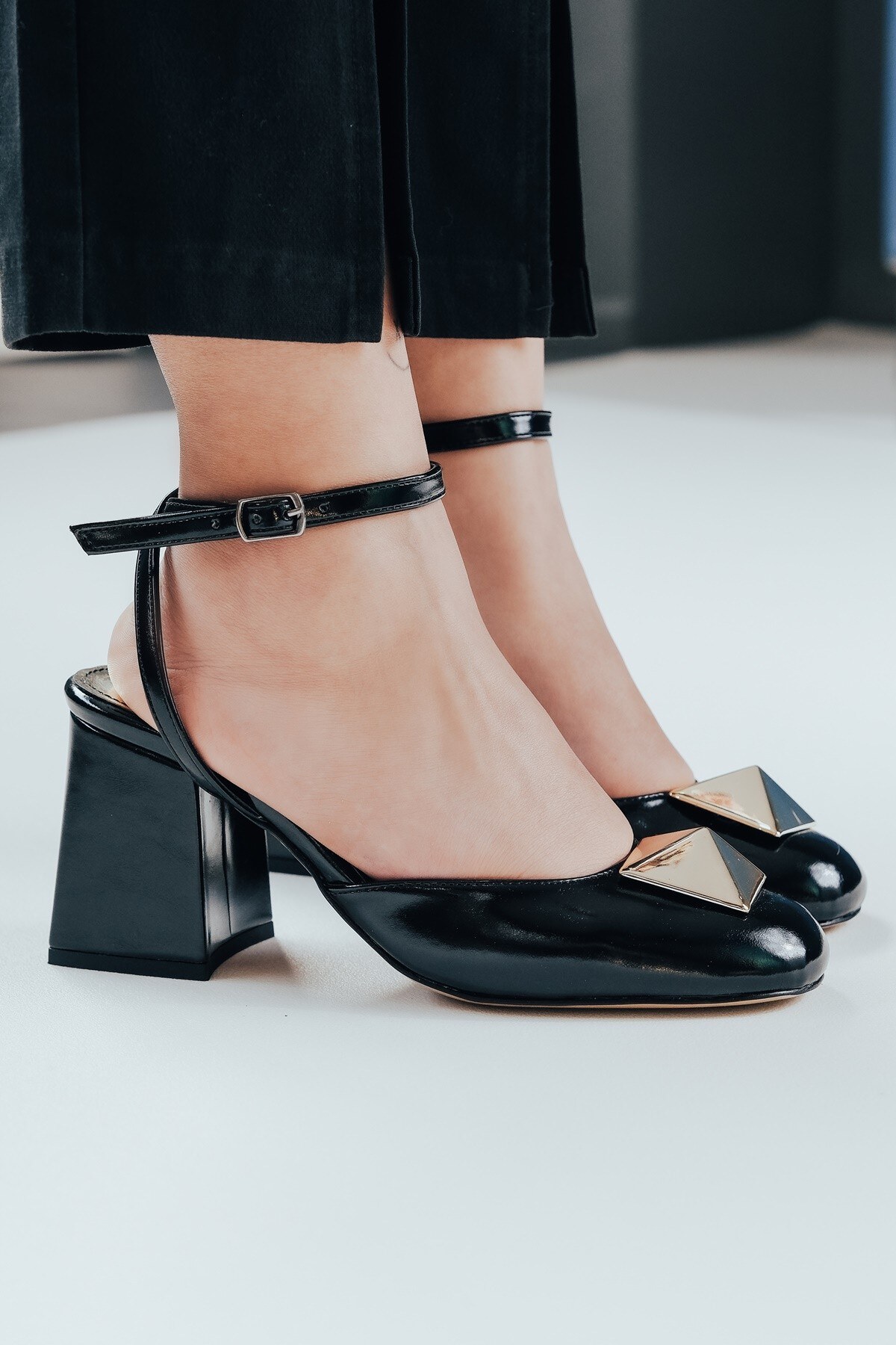 Kadın Büyük Toka Detaylı Topuklu Ayakkabı Flora Siyah