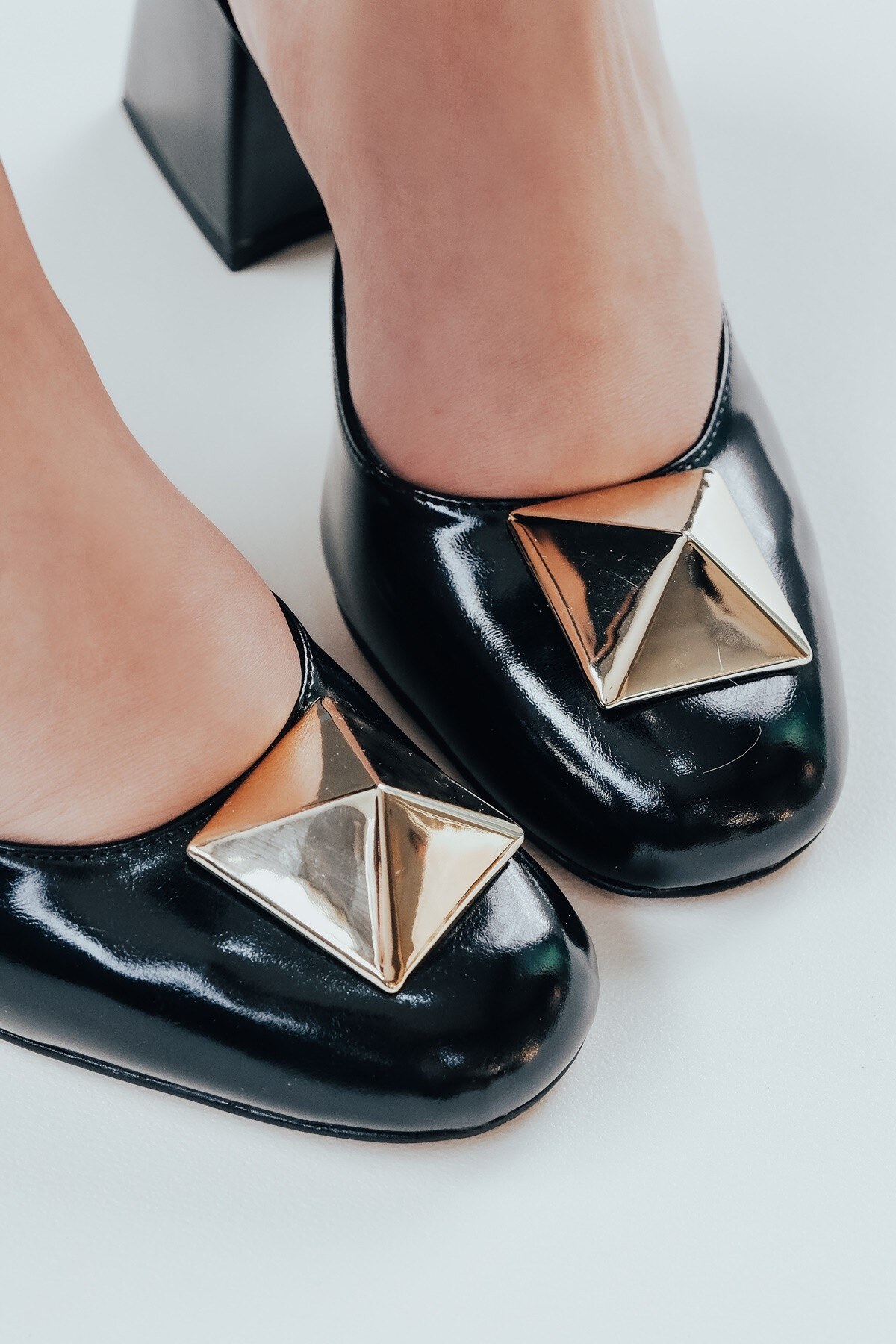 Kadın Büyük Toka Detaylı Topuklu Ayakkabı Flora Siyah