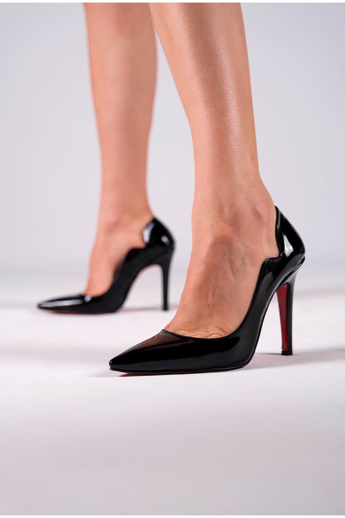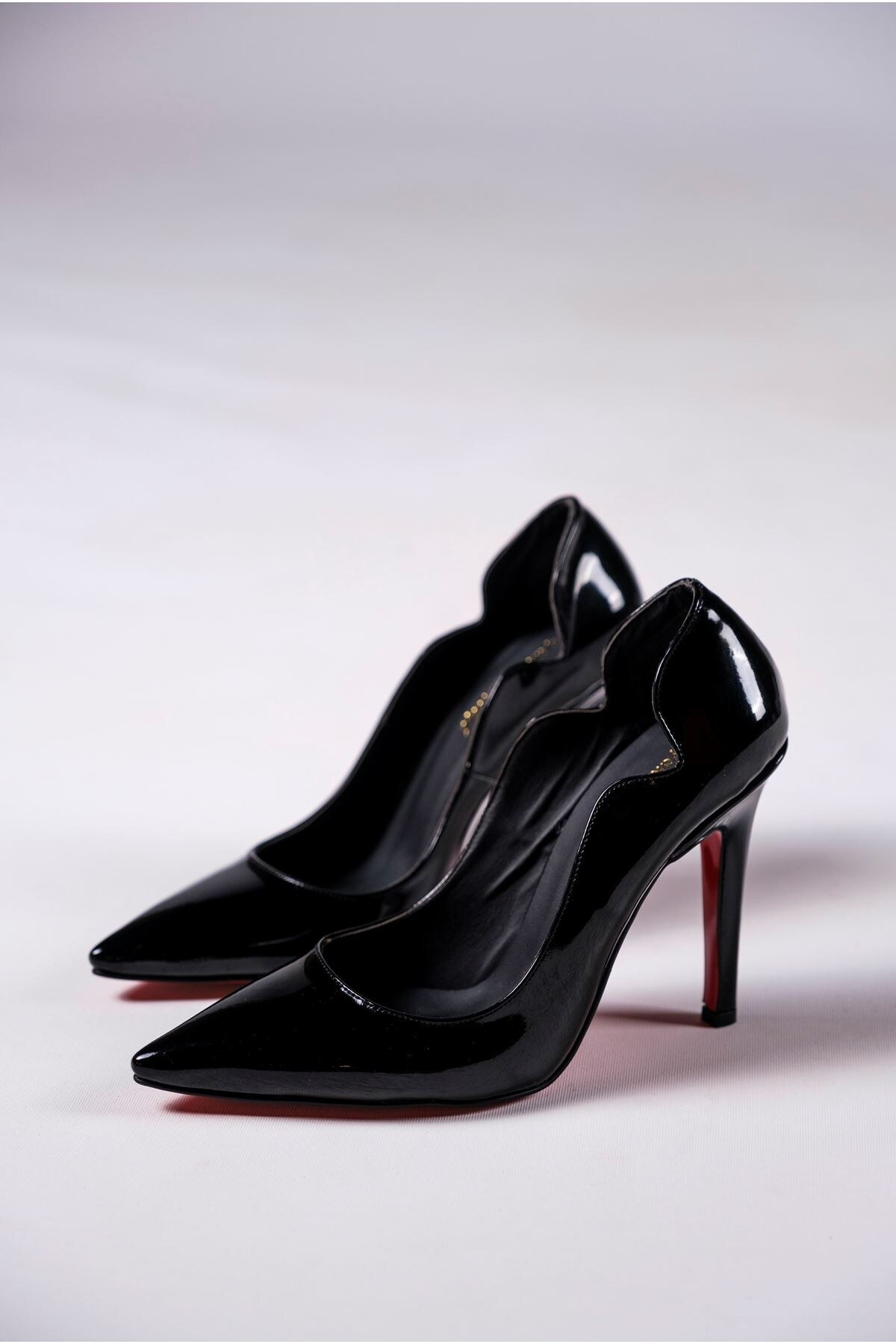 Kadın Tasarım Sivri Burun Topuklu Ayakkabı Happy Siyah Rugan