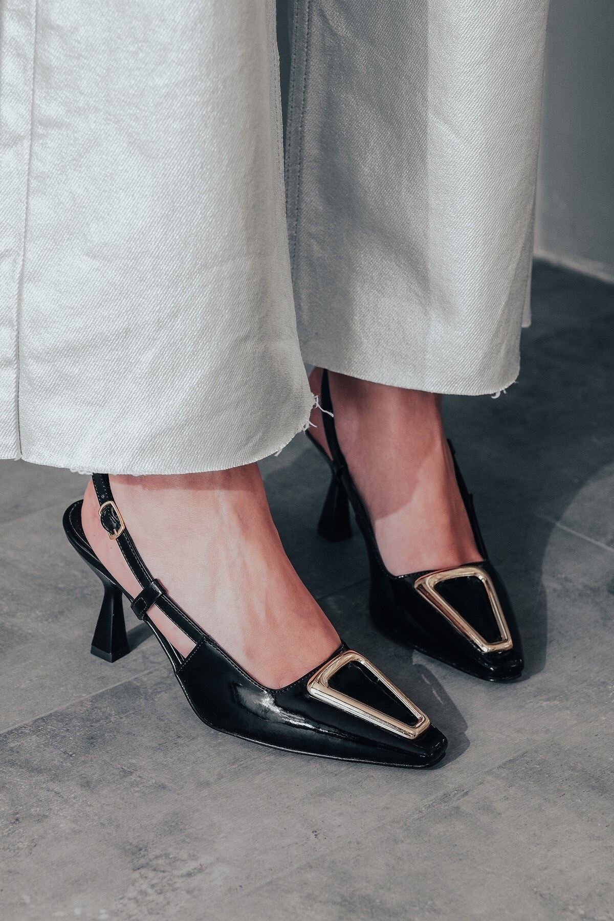 Kadın Tasarım Büyük Toka Detay Kadın Orta Topuklu Ayakkabı Pira Siyah