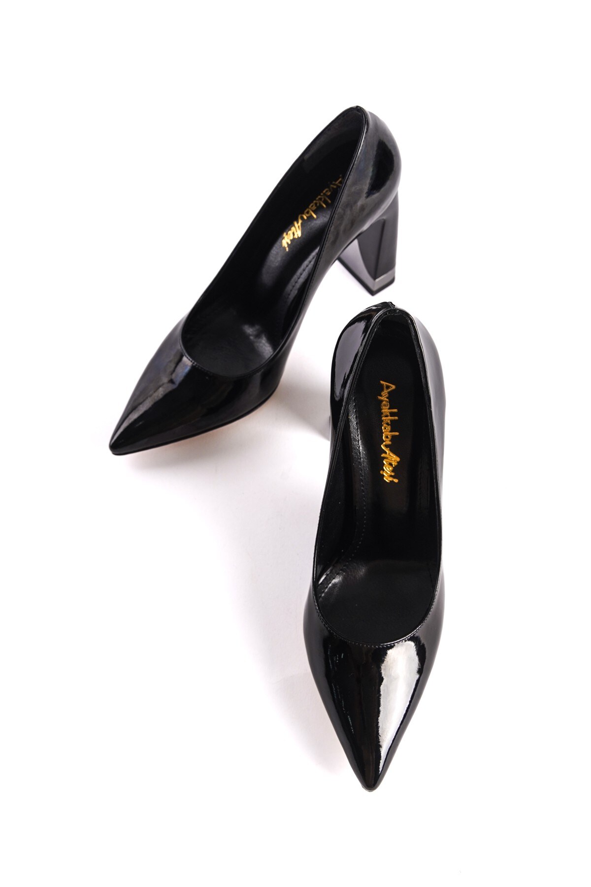 Siyah Rugan Tasarım Topuklu Kadın Stiletto Harly Siyah