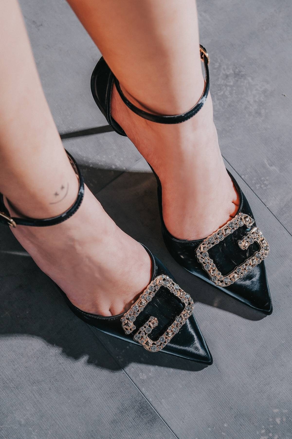 Siyah Saten Özel Tokalı Kadın İnce Topuklu Ayakkabı Corca Siyah Saten
