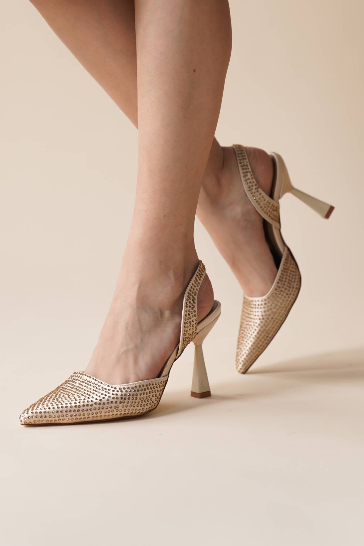 Bej Taşlı Tasarım Topuklu Ayakkabı Riena